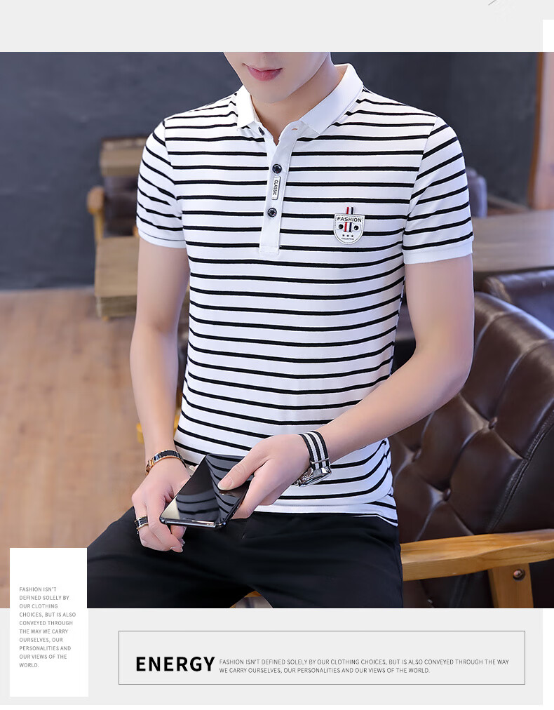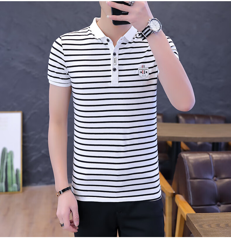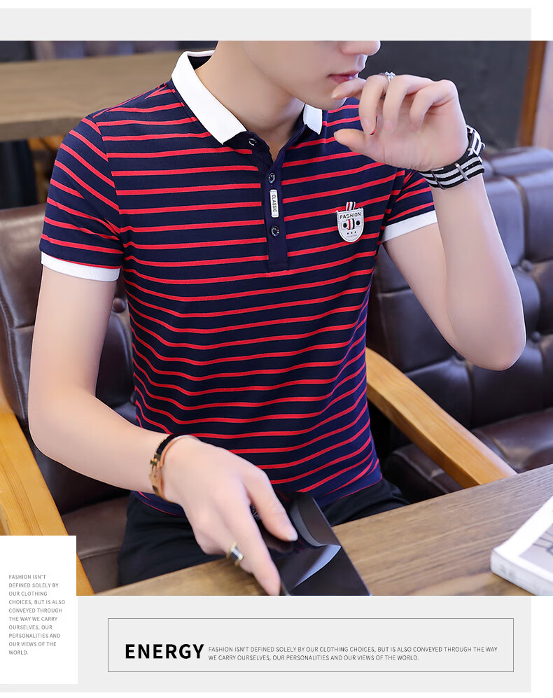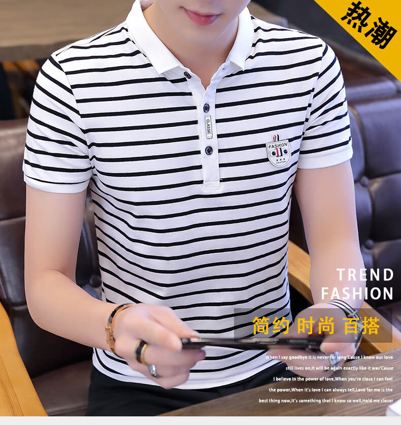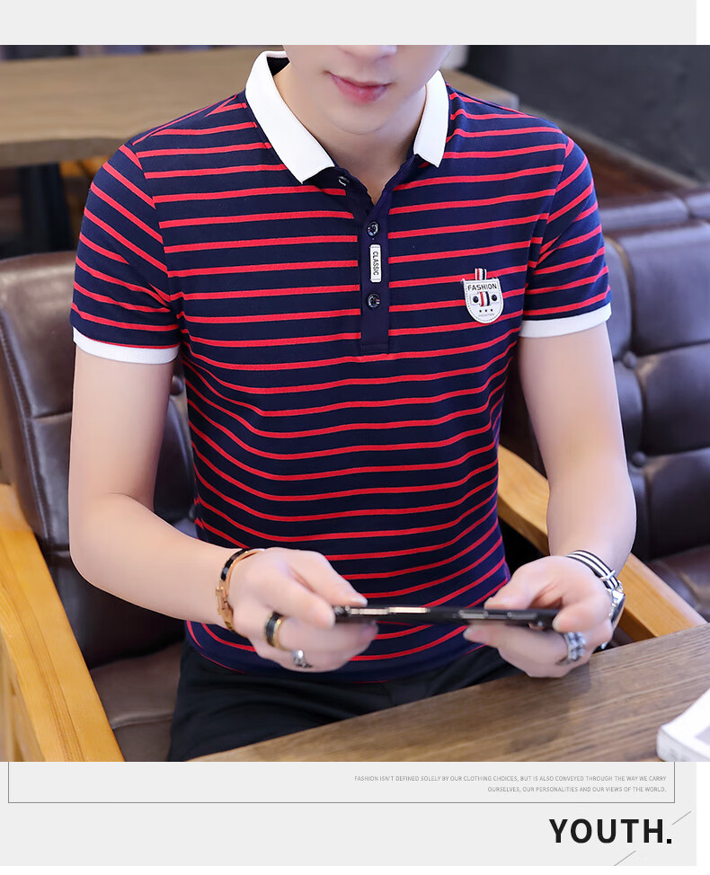 Playboy Men's Short Sleeve Simple Versatile Boys T-shirt Lapel Polo Shirt Trendy Korean Men's Summer T-shirt Men's Clothing 7029 Navy Blue XL