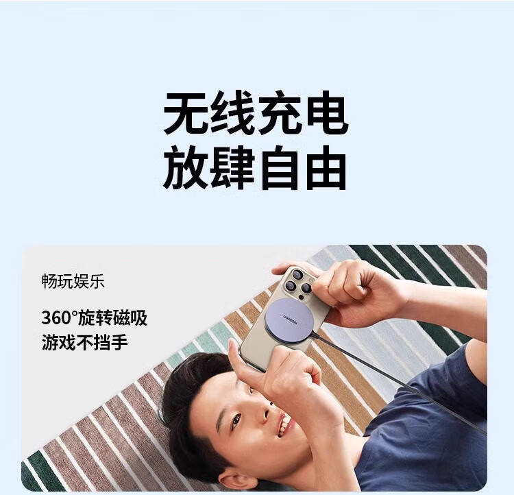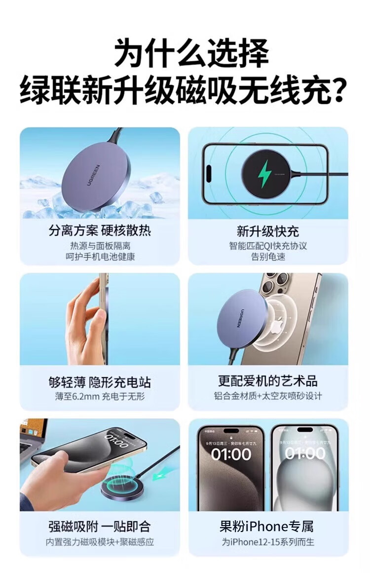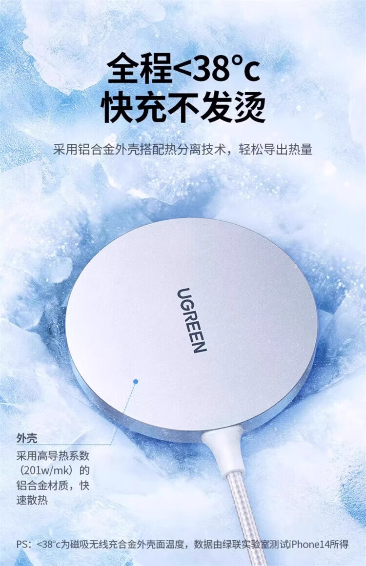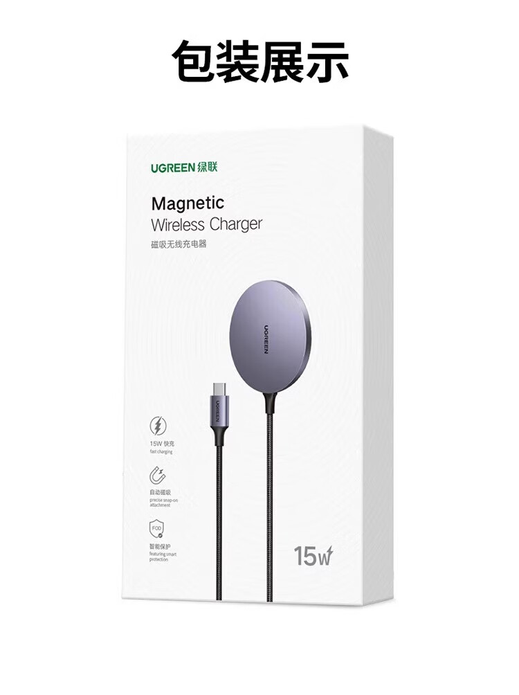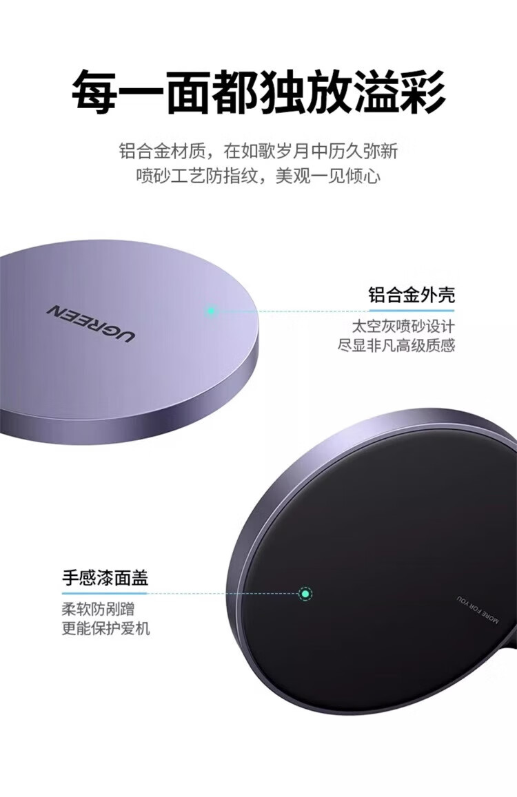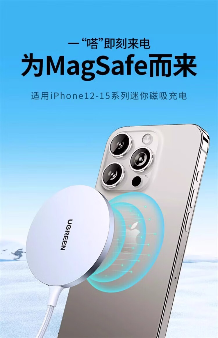 绿联(UGREEN)magsafe磁吸无线充电器适用于苹果iPhone16promax15手机安卓桌面支架底座配件20w快充电线板通用mi 15673【钛白色】升级轻薄低温适用苹果12-16