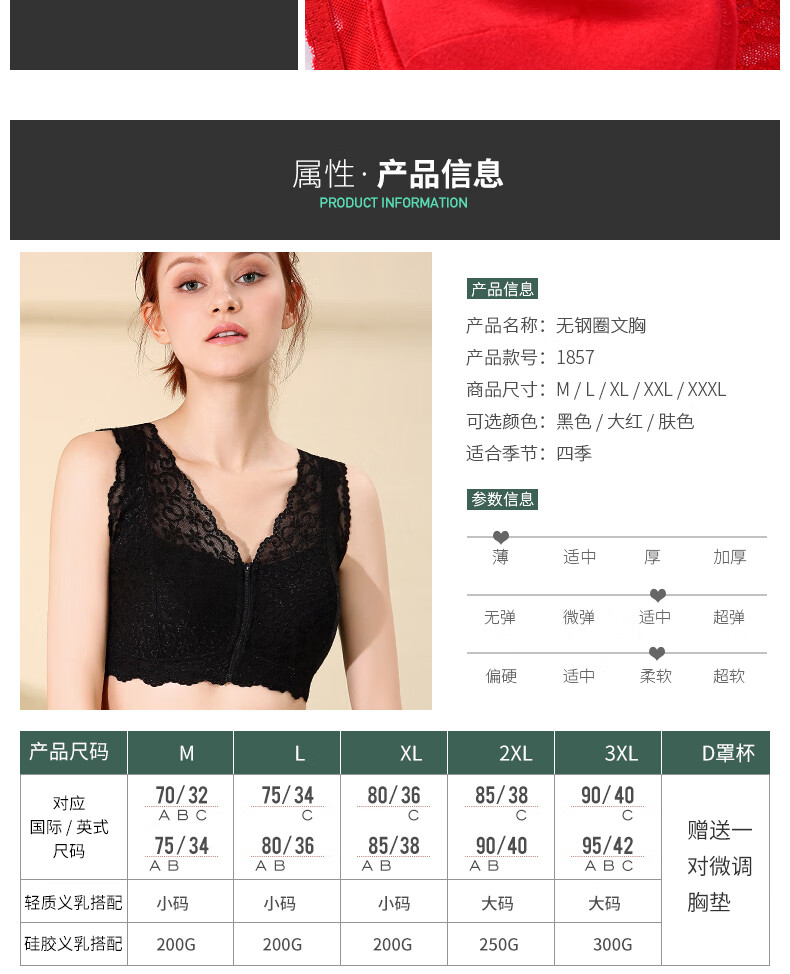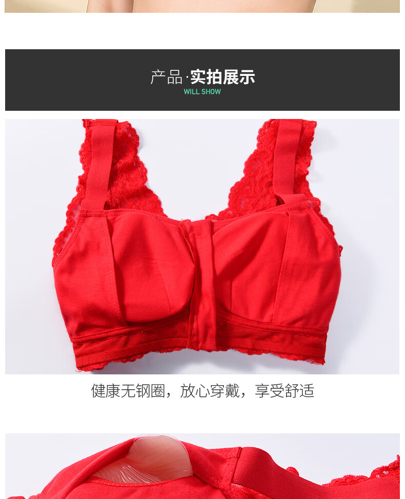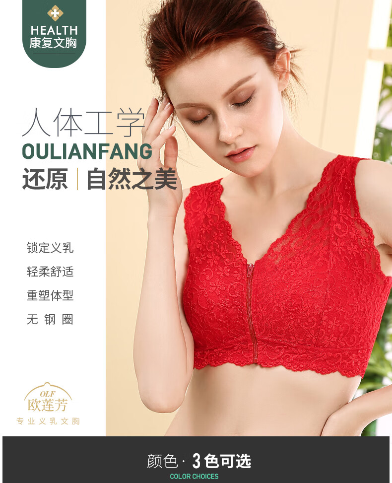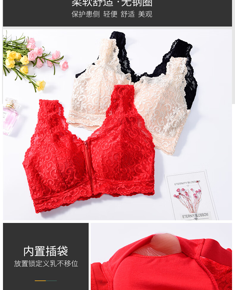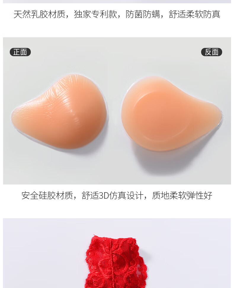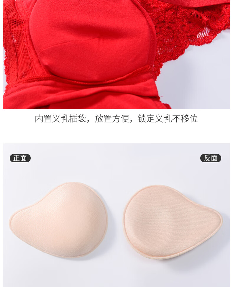 本命年义乳文胸二合一假胸假乳房胸罩癌术后专用无钢圈内衣 大红+轻质乳胶义乳(左侧) M _【70ABC-75AB】