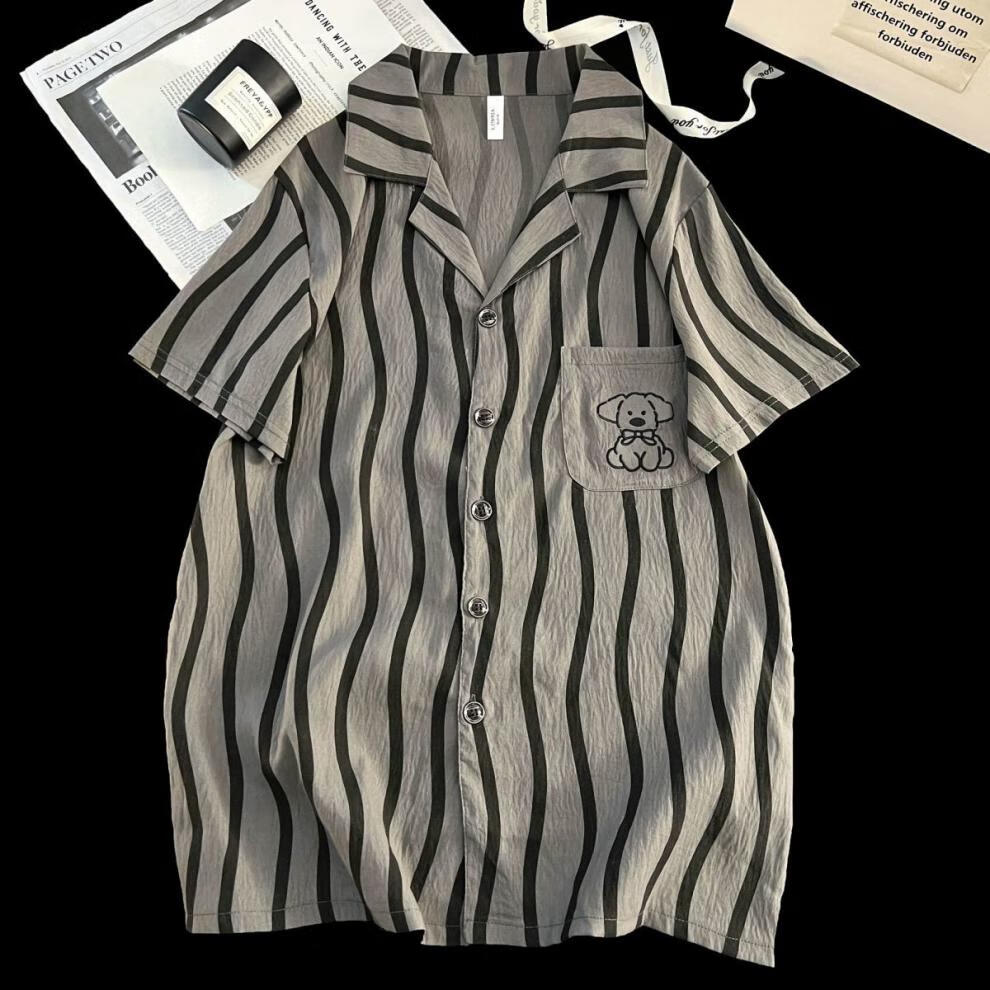 北极绒男士睡衣2025新款云朵夏季条纹休闲家居服套装薄款夏天短袖睡衣男 12529 L 建议100-130斤