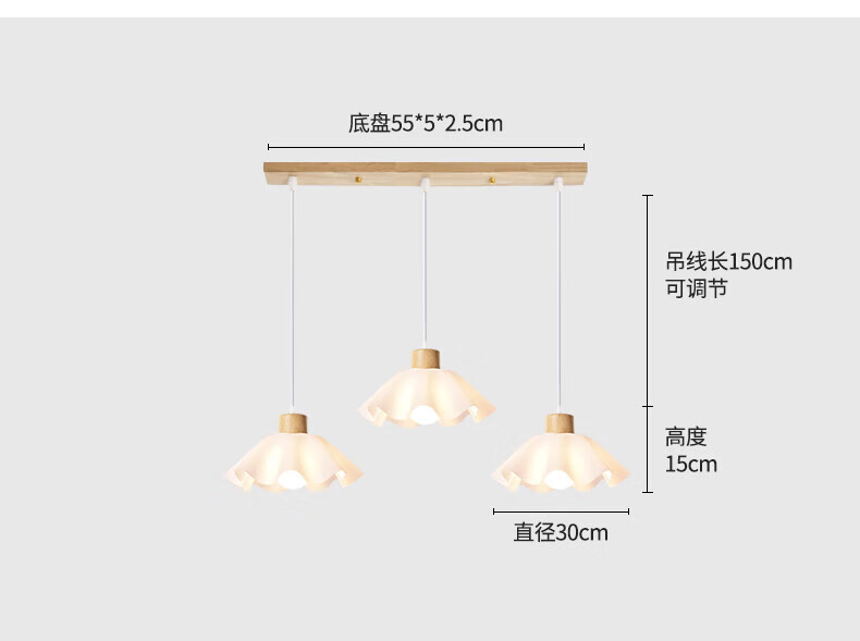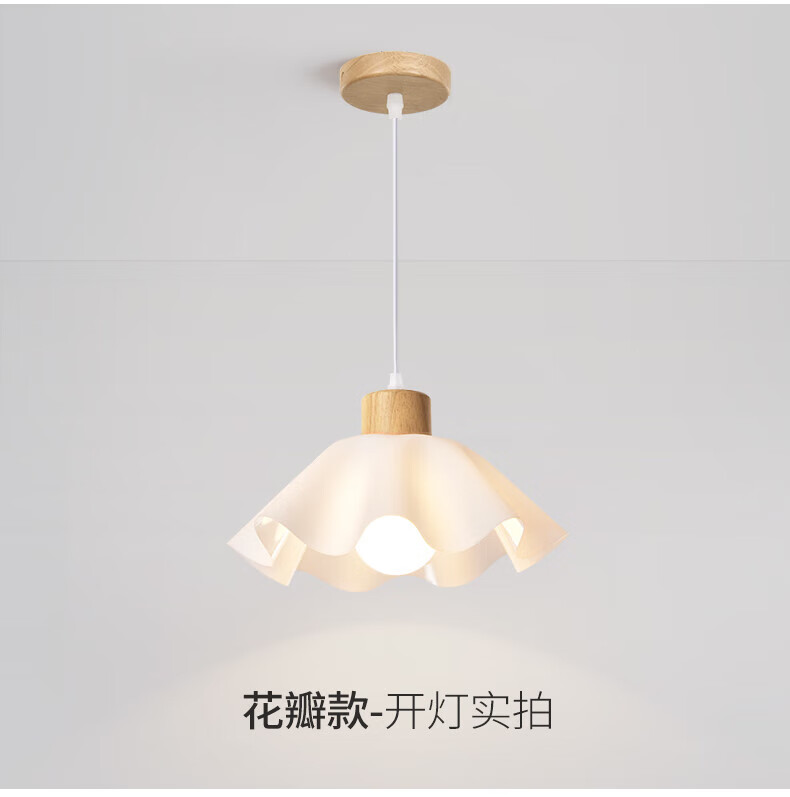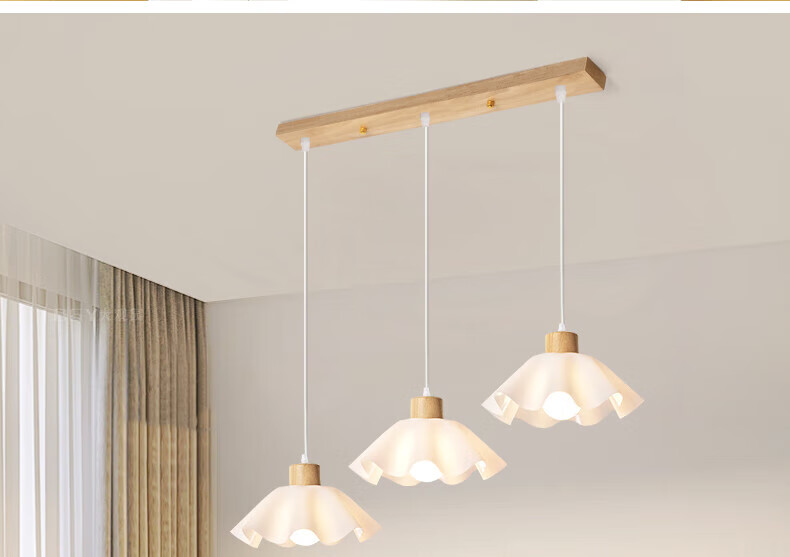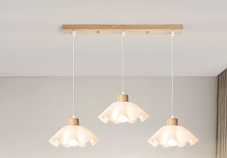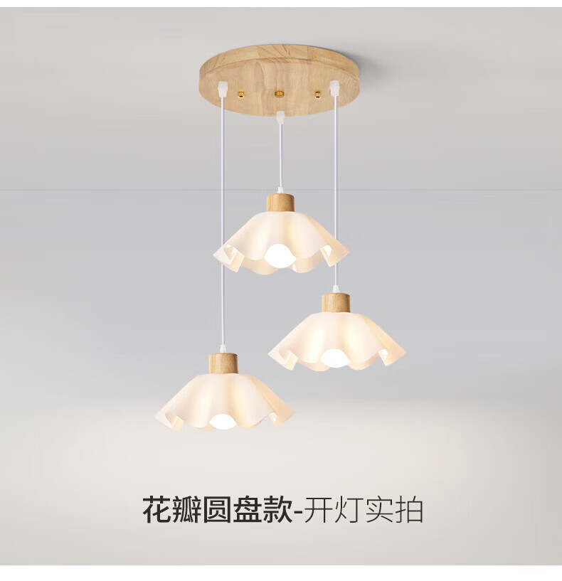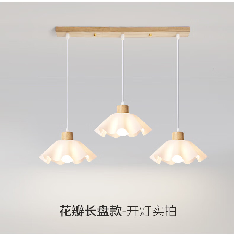 XMSJ餐厅吊灯北欧木艺餐厅灯新款侘寂风卧室床头吊灯花朵灯中山灯具 3880-三头长盘款-27W三色-全光