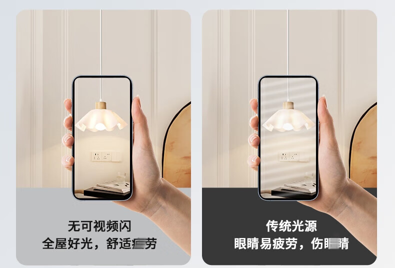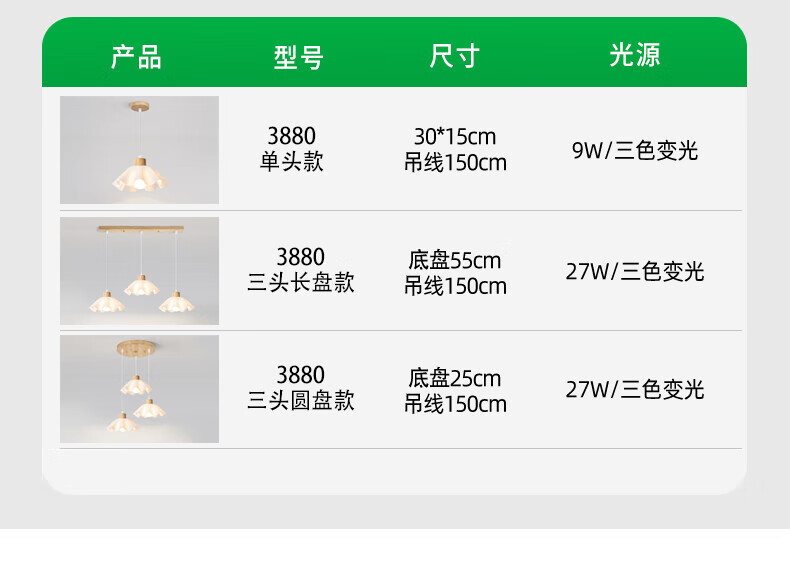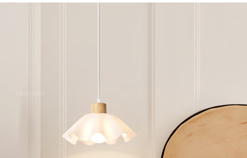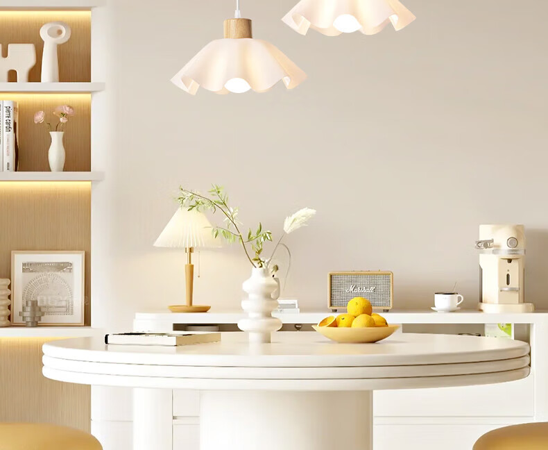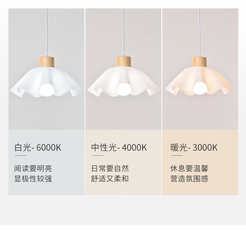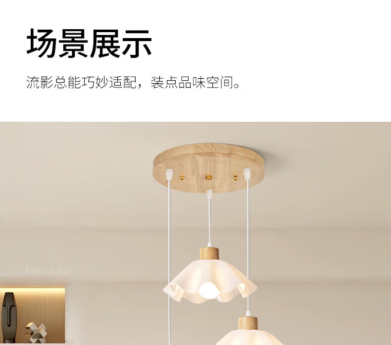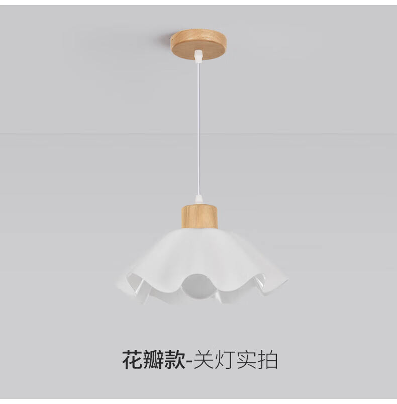 XMSJ餐厅吊灯北欧木艺餐厅灯新款侘寂风卧室床头吊灯花朵灯中山灯具 3880-三头长盘款-27W三色-全光