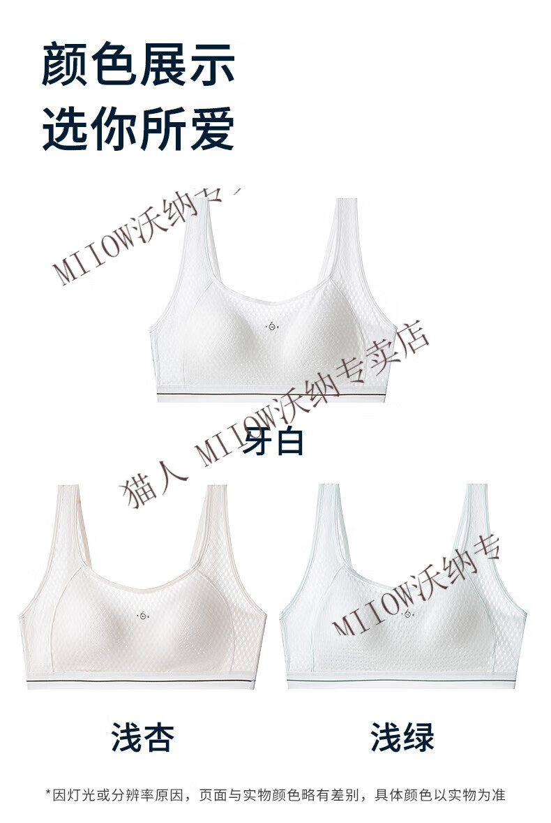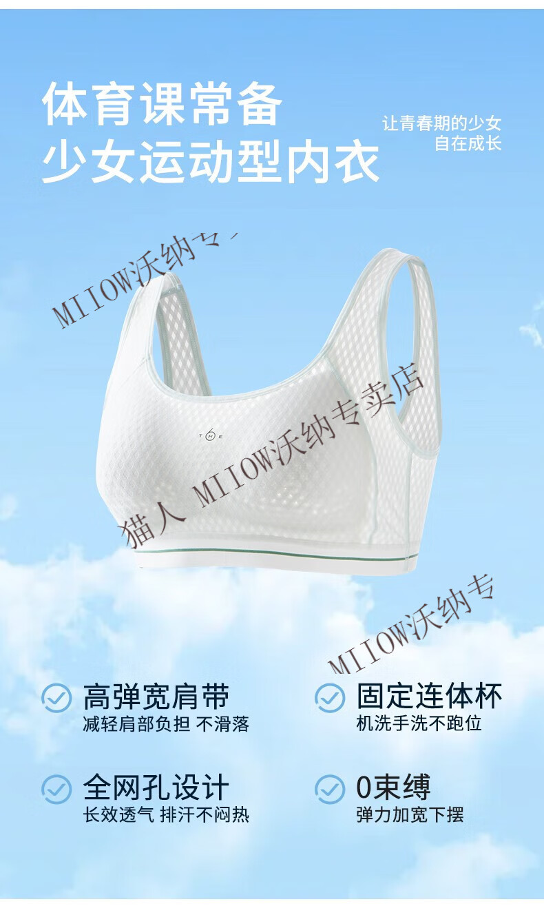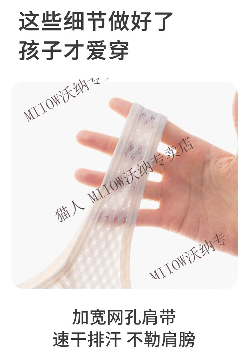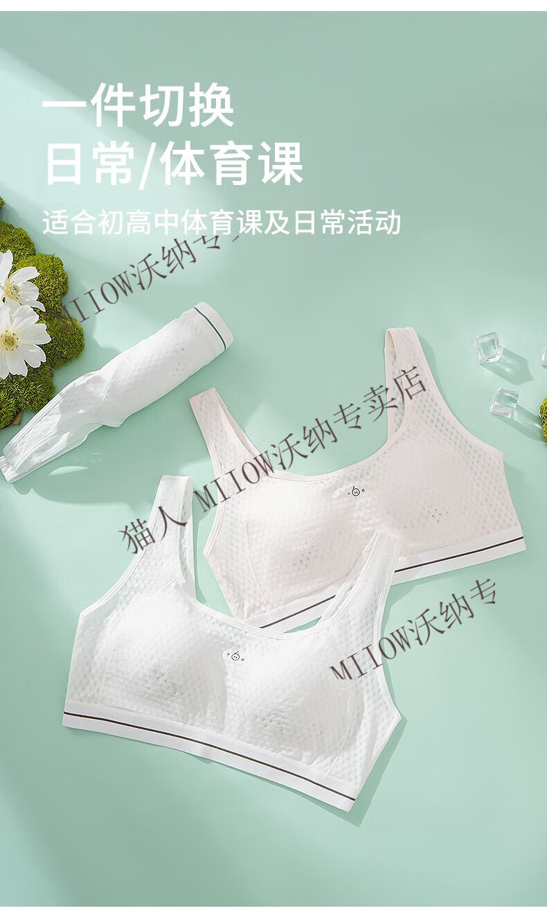 猫人高中生少女背心发育期学生文胸A类运动防震小胸初中秋季内衣 白+浅杏 2XL 130-145斤