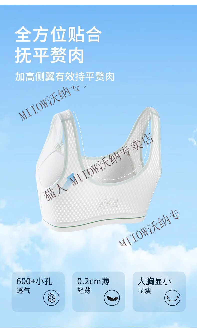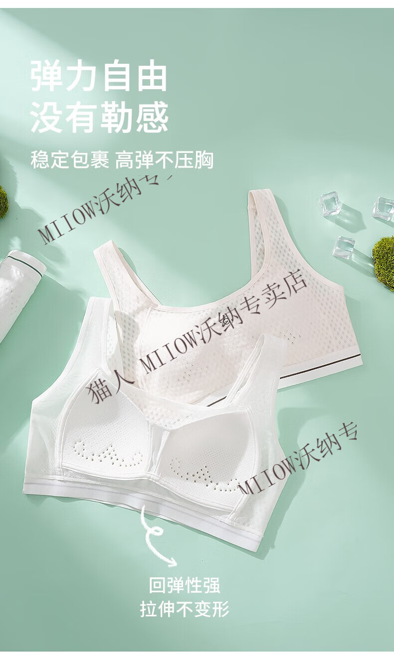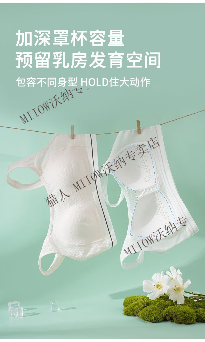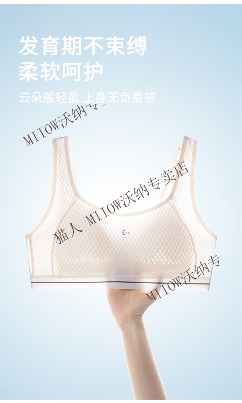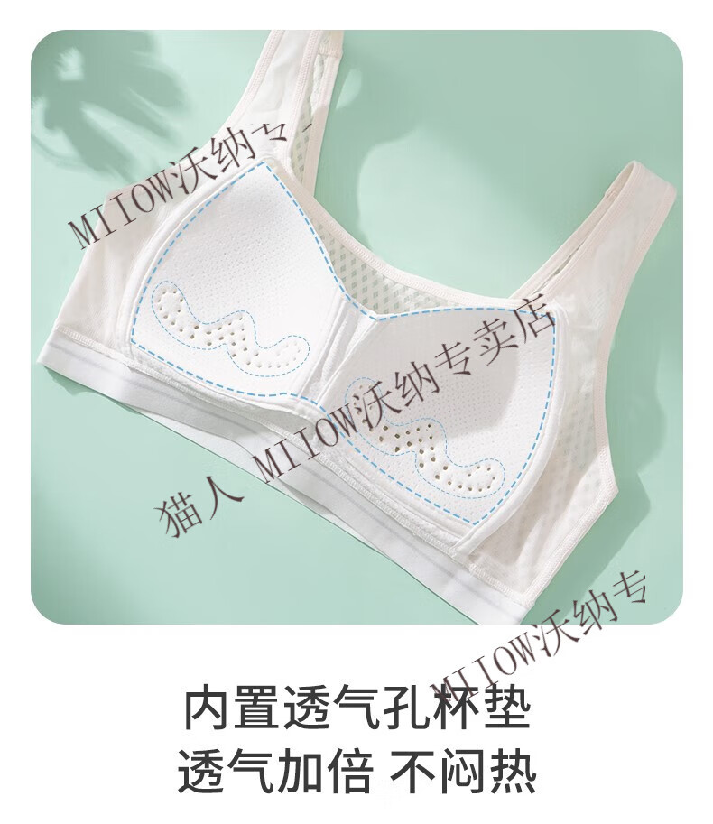 猫人高中生少女背心发育期学生文胸A类运动防震小胸初中秋季内衣 白+浅杏 2XL 130-145斤
