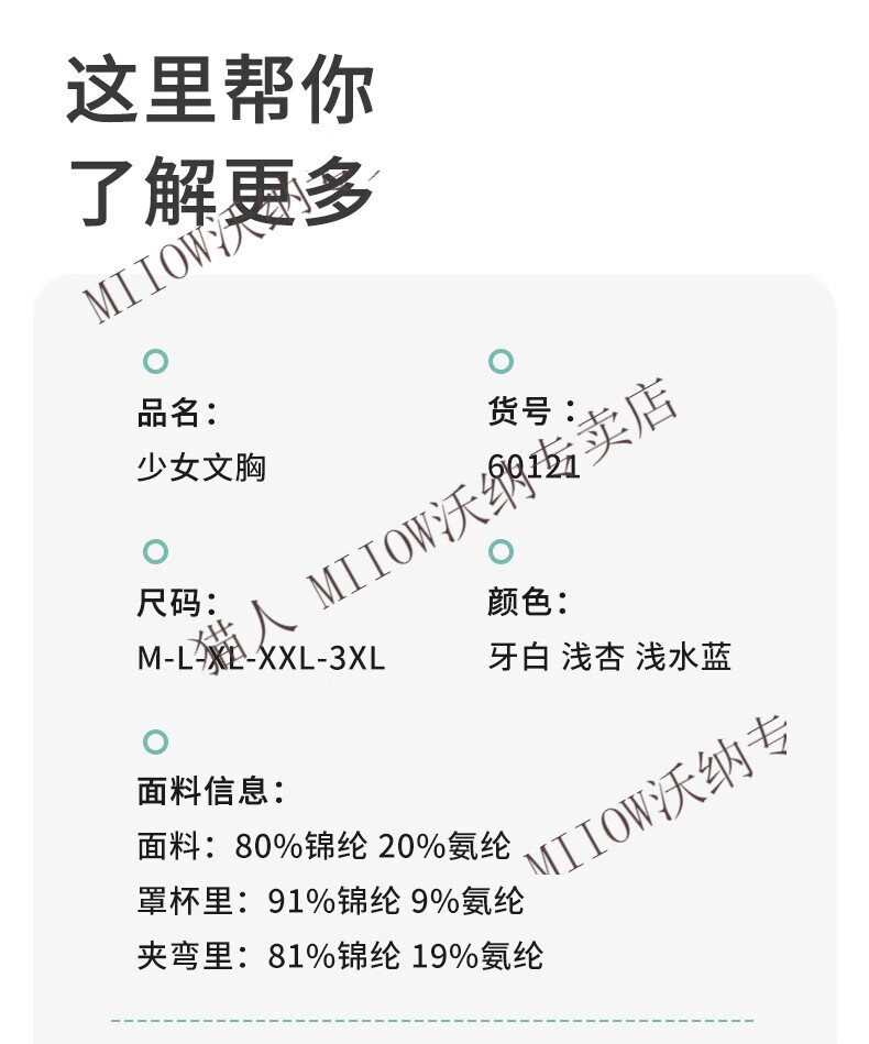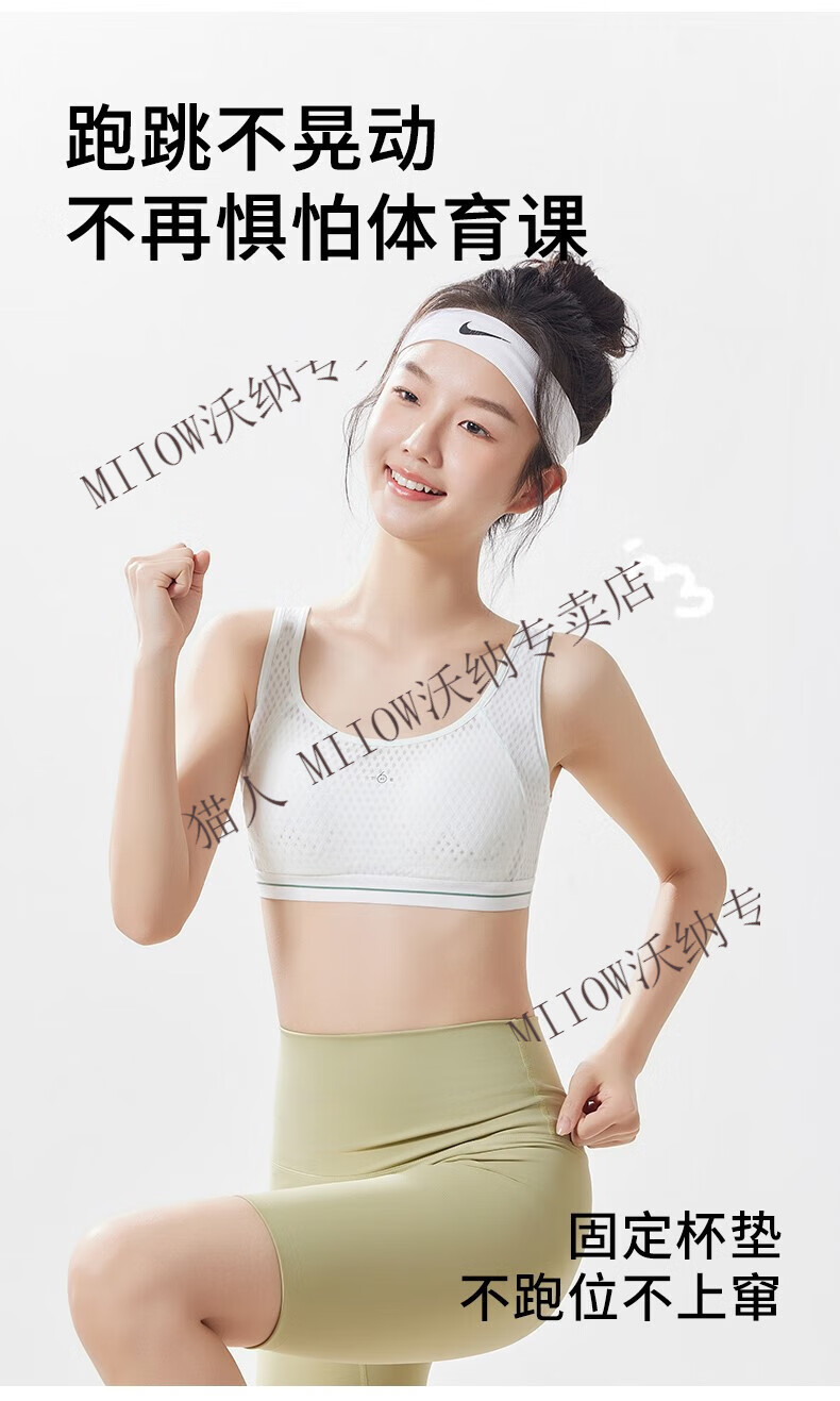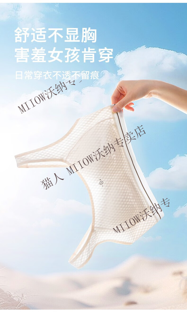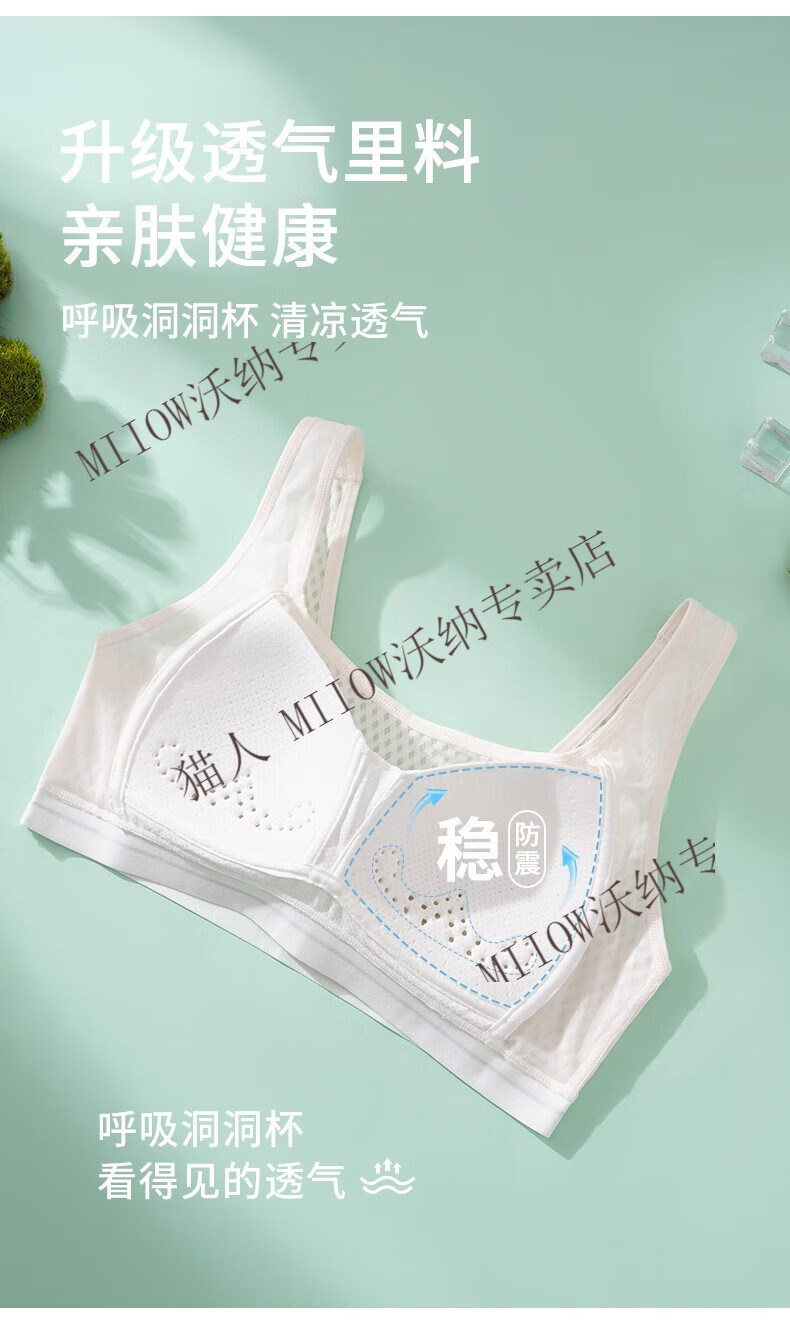 猫人高中生少女背心发育期学生文胸A类运动防震小胸初中秋季内衣 白+浅杏 2XL 130-145斤