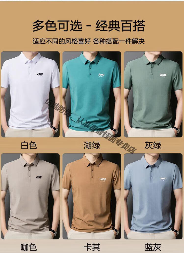 JEEP SPIRITJEEP吉普冰丝无痕POLO衫男夏季薄款透气爸爸短袖翻领宽松冰感上衣 湖绿 JPBL12357 4XL 建议体重【180-200斤】