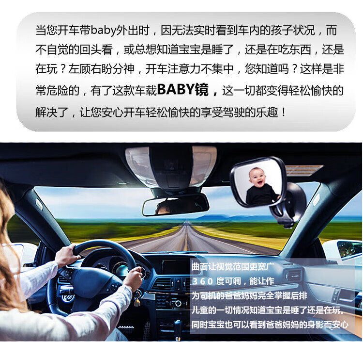 越野兵 车内宝宝后视镜 汽车儿童婴儿观察镜辅助镜 后排观察镜车载辅助 宝宝观察镜子-单个装