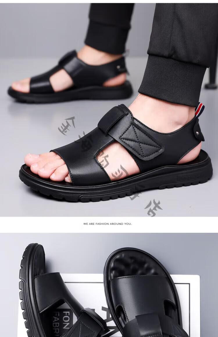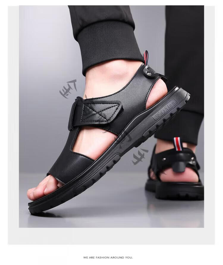 Bolomido奢侈高端品牌高档凉鞋男士真皮夏季透气外穿沙滩鞋休闲舒适轻便 CLP6189黑色 40