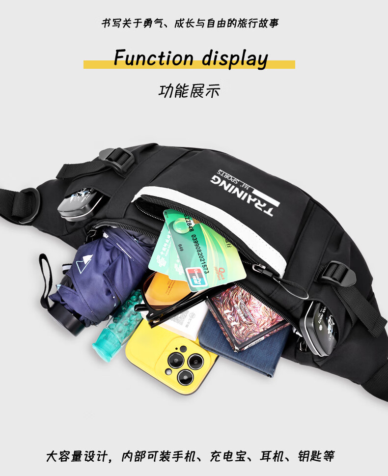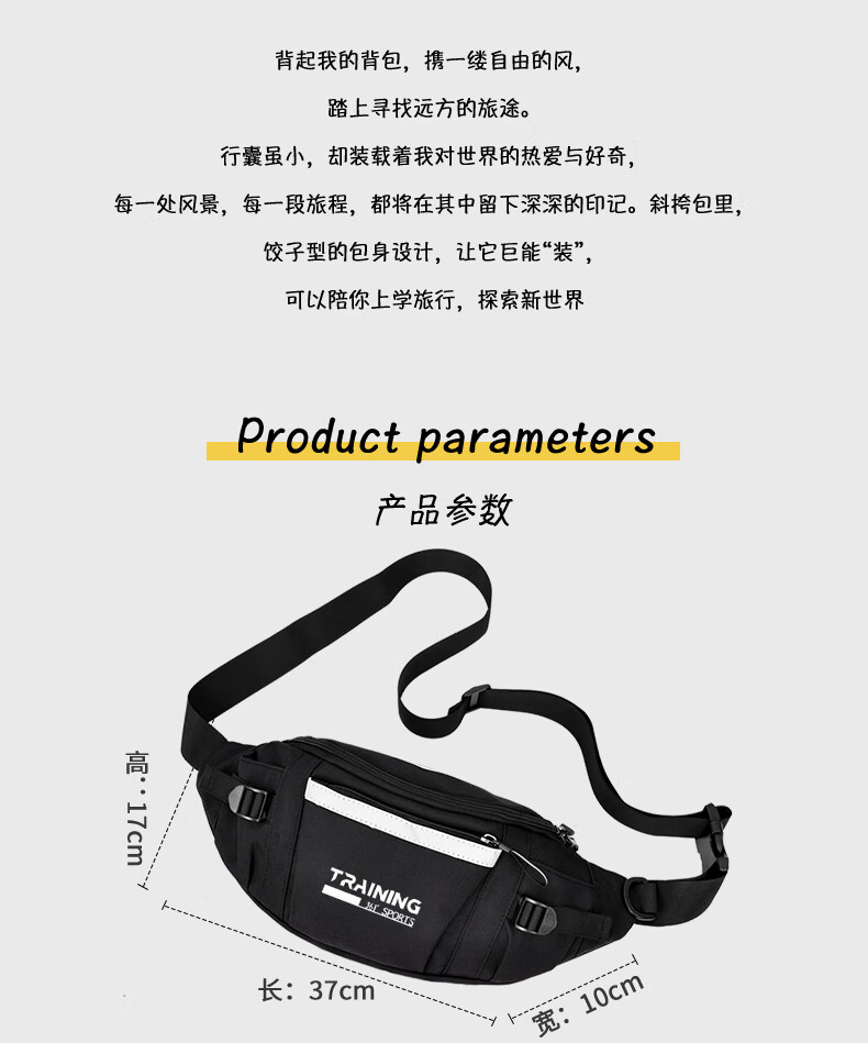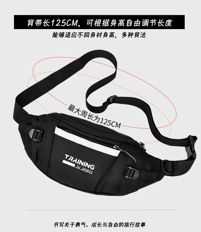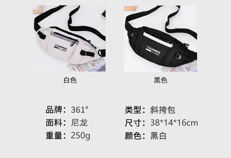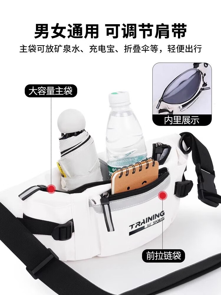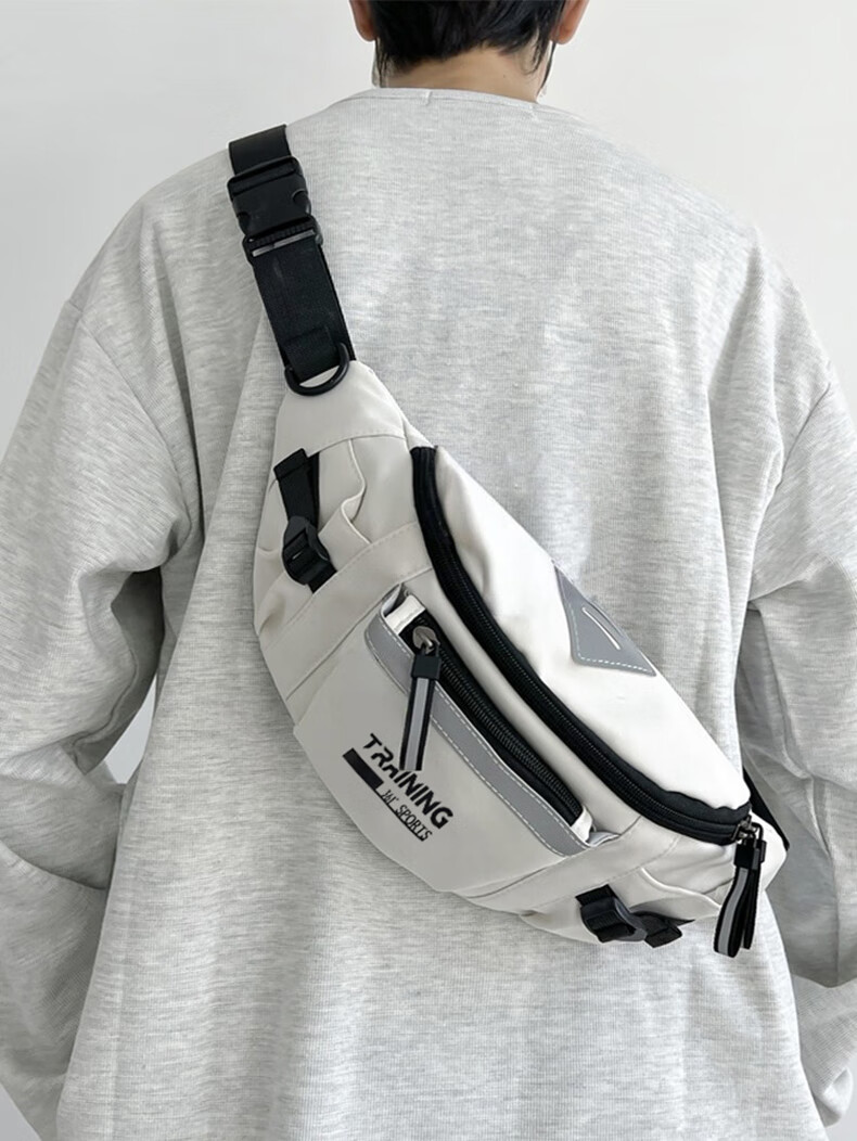 361°单肩包男女大容量休闲学生斜挎包骑行胸包原宿风运动百搭腰包 白色