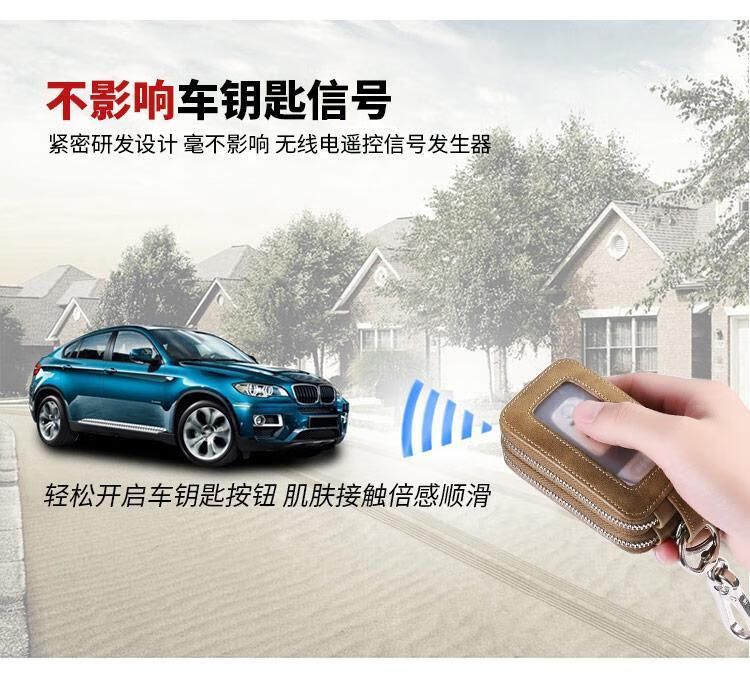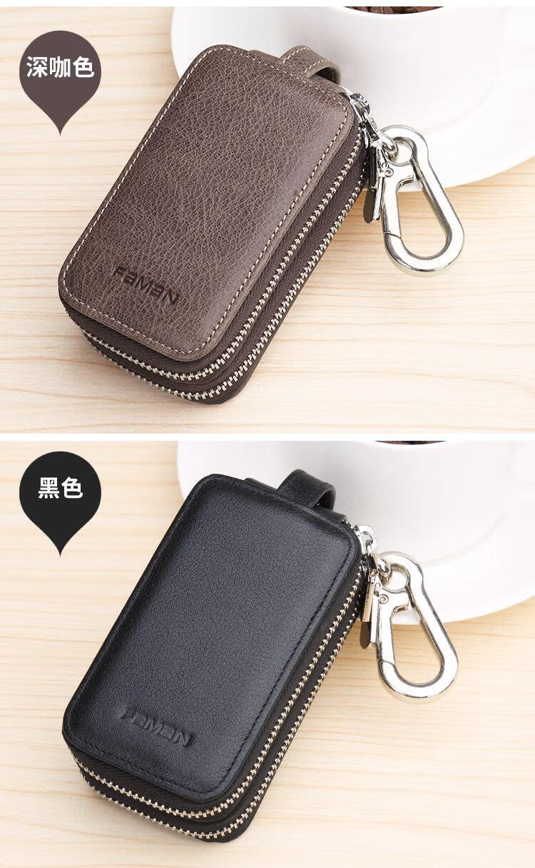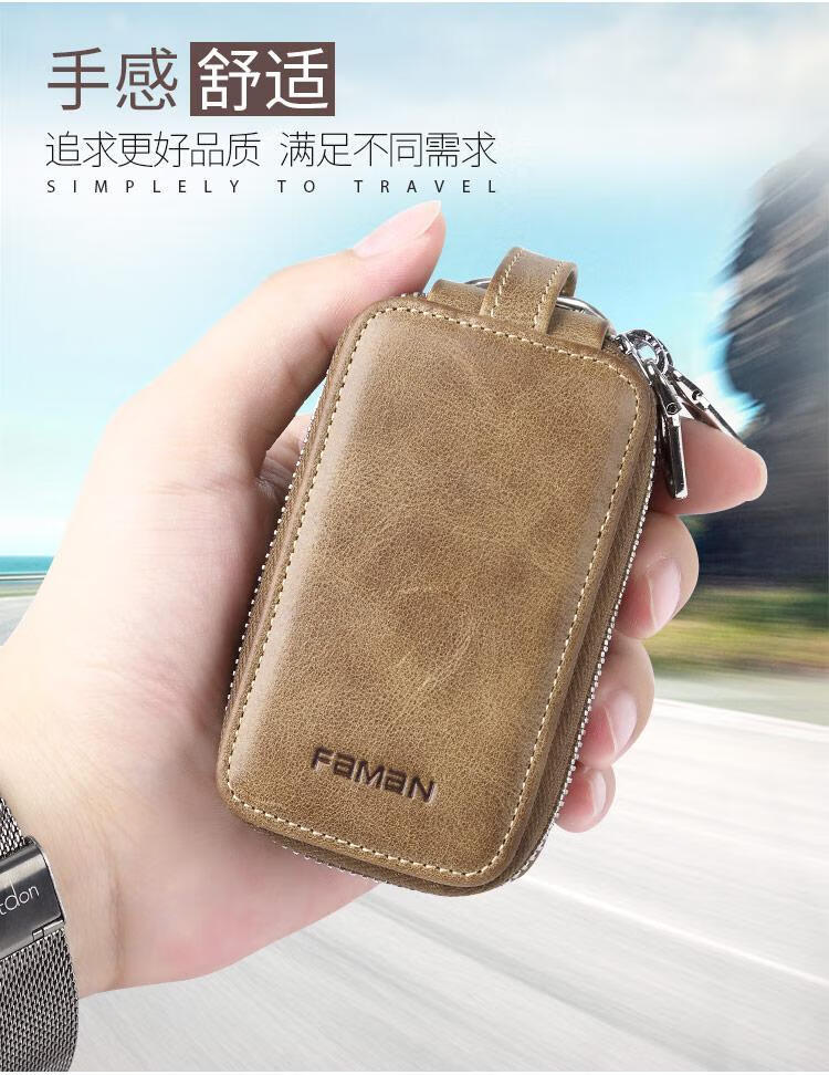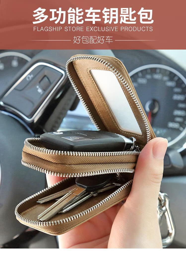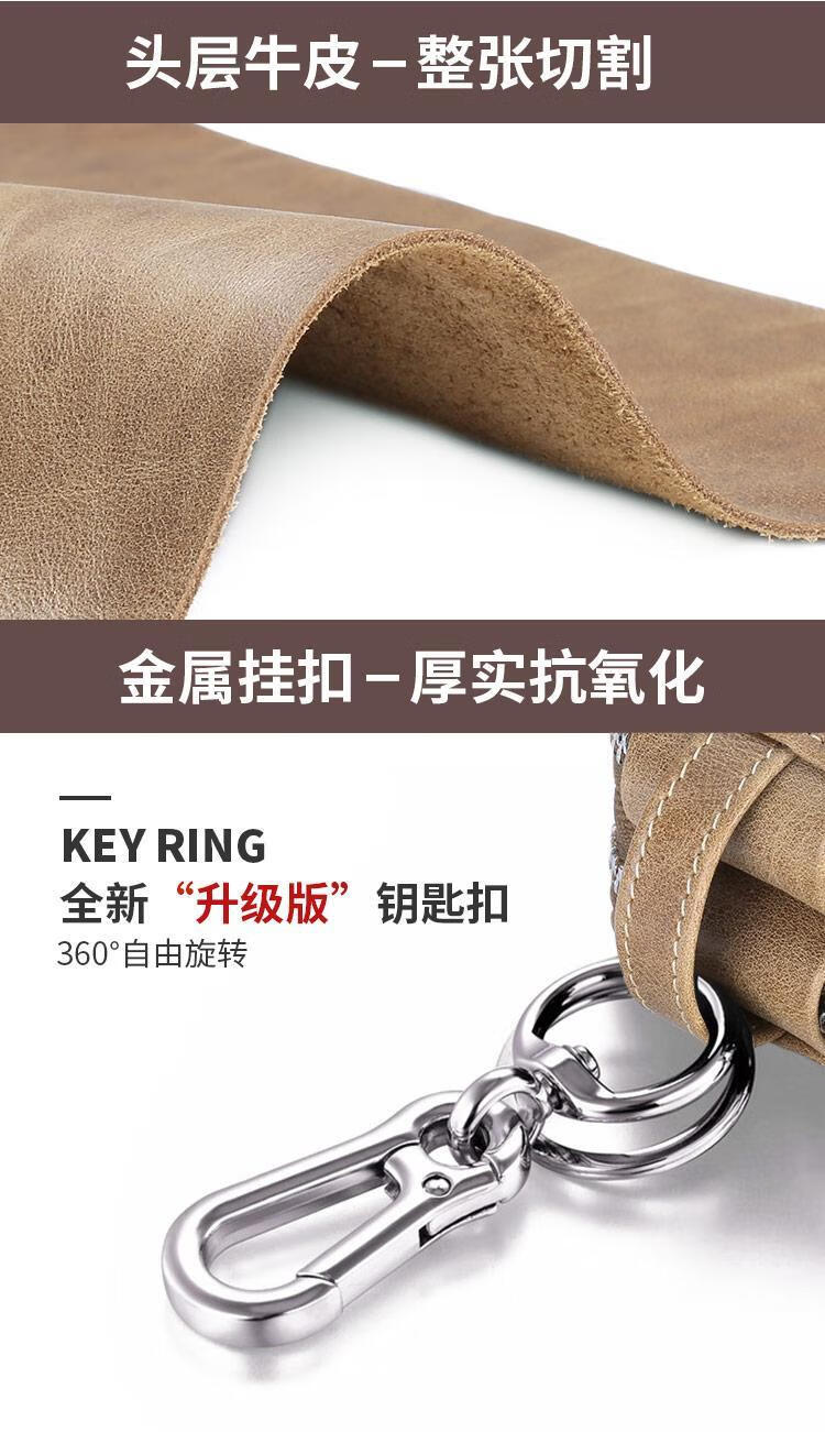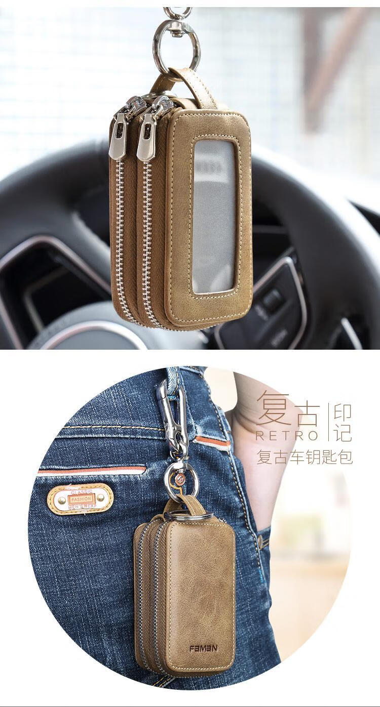 Sac à clés de voiture Sac à clés de ménage multifonctionnel en cuir véritable pour hommes, grande capacité, sac à clés de voiture, sac à clés universel kaki + première couche de peau de vache