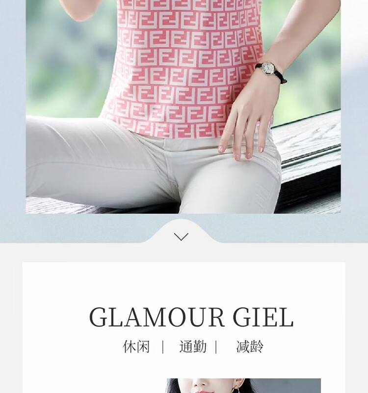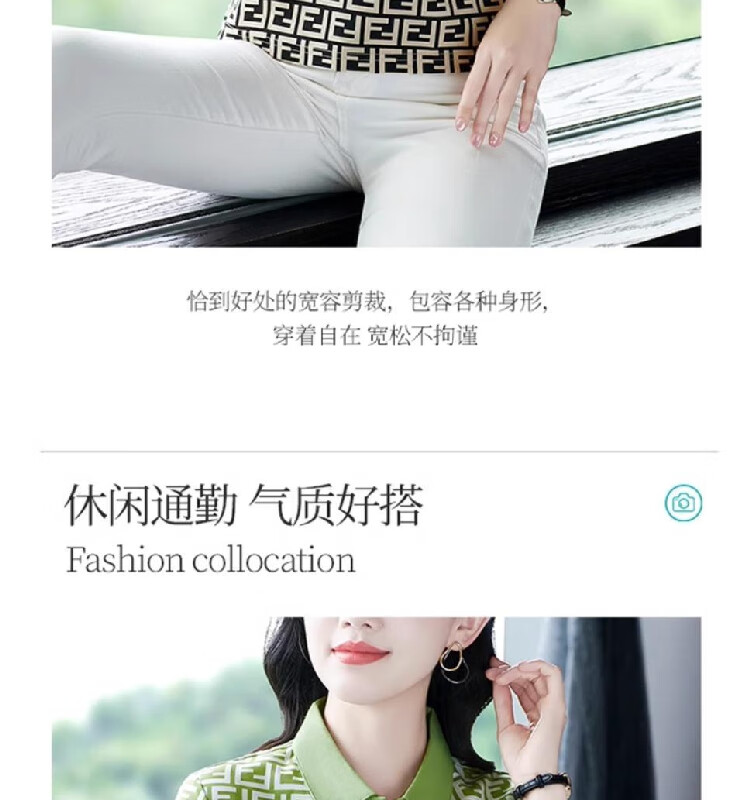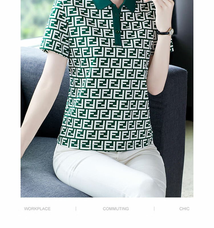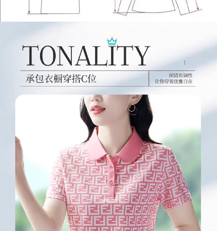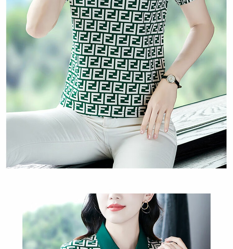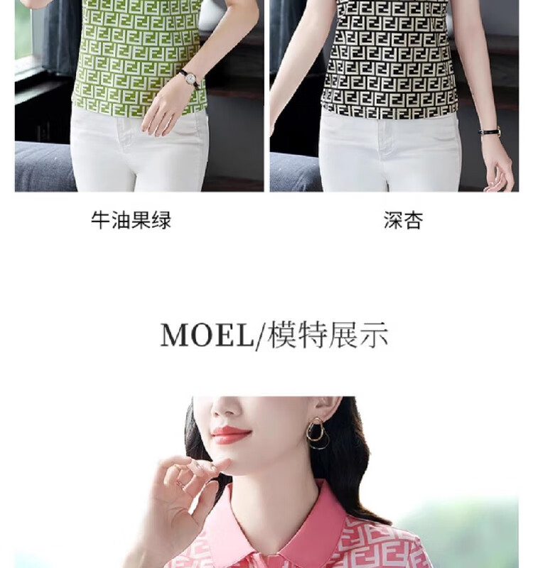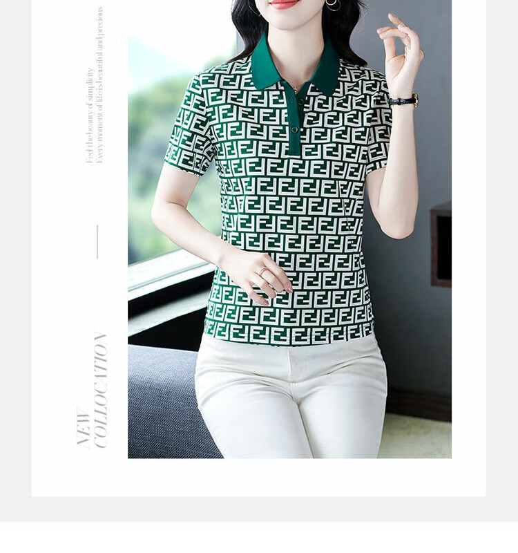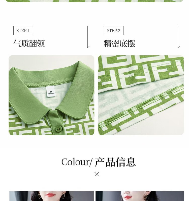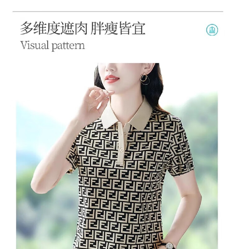 洋气妈妈翻领短袖t恤女士夏季2024新款宽松显瘦POLO衫女印花上衣 829-粉色 829-粉色 M 【建议85-100斤】