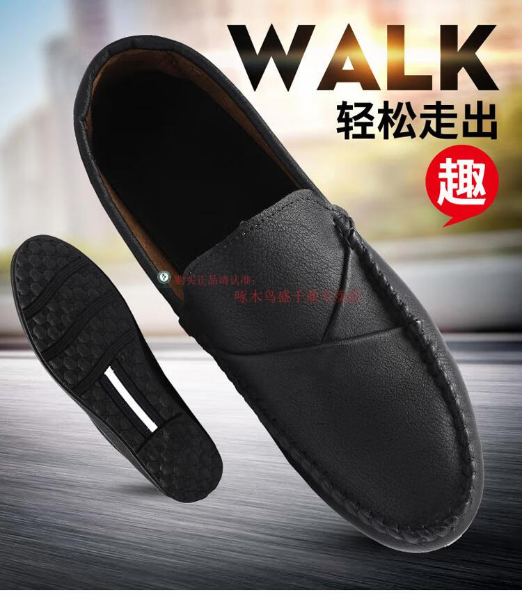 啄木鸟2025夏秋季新款豆豆鞋软皮男士休闲皮鞋青年韩版潮流一脚蹬懒人鞋 YL-D826棕色 39