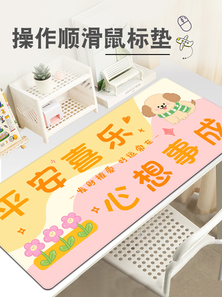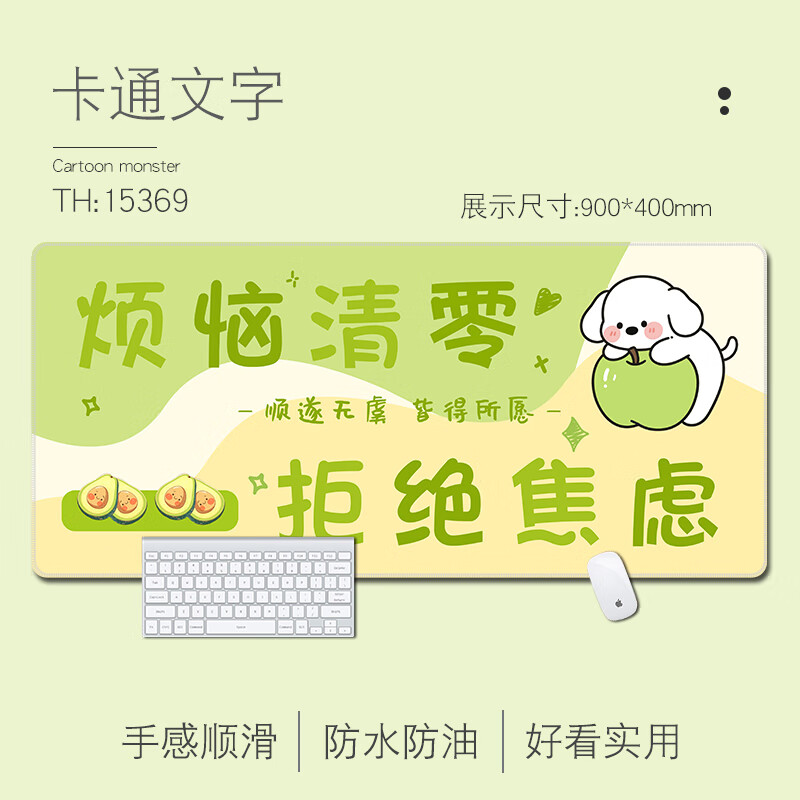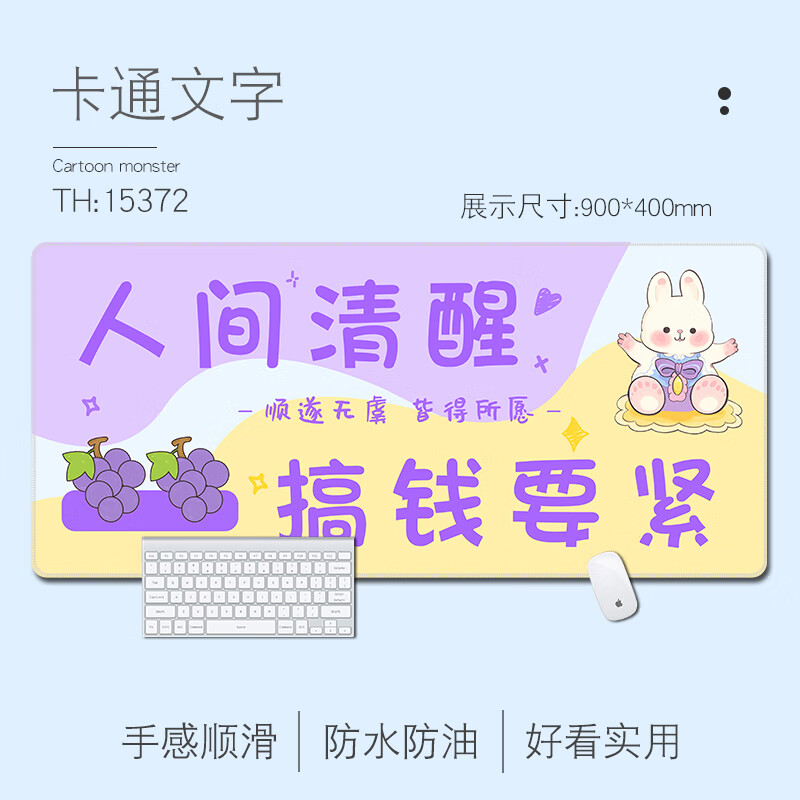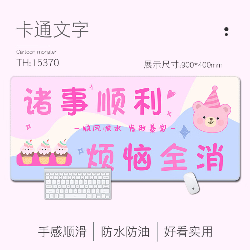 趣味极卡通文字鼠标垫超大号女生可爱桌垫办公键盘垫橡胶垫写字垫简约防滑可定制简约百搭高颜值加厚锁边 15281 发财暴富 600毫米*300毫米*2毫米