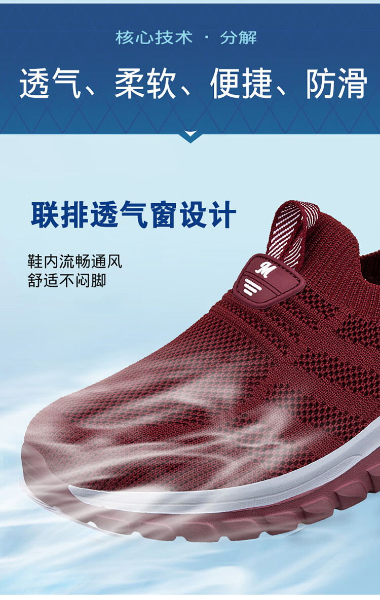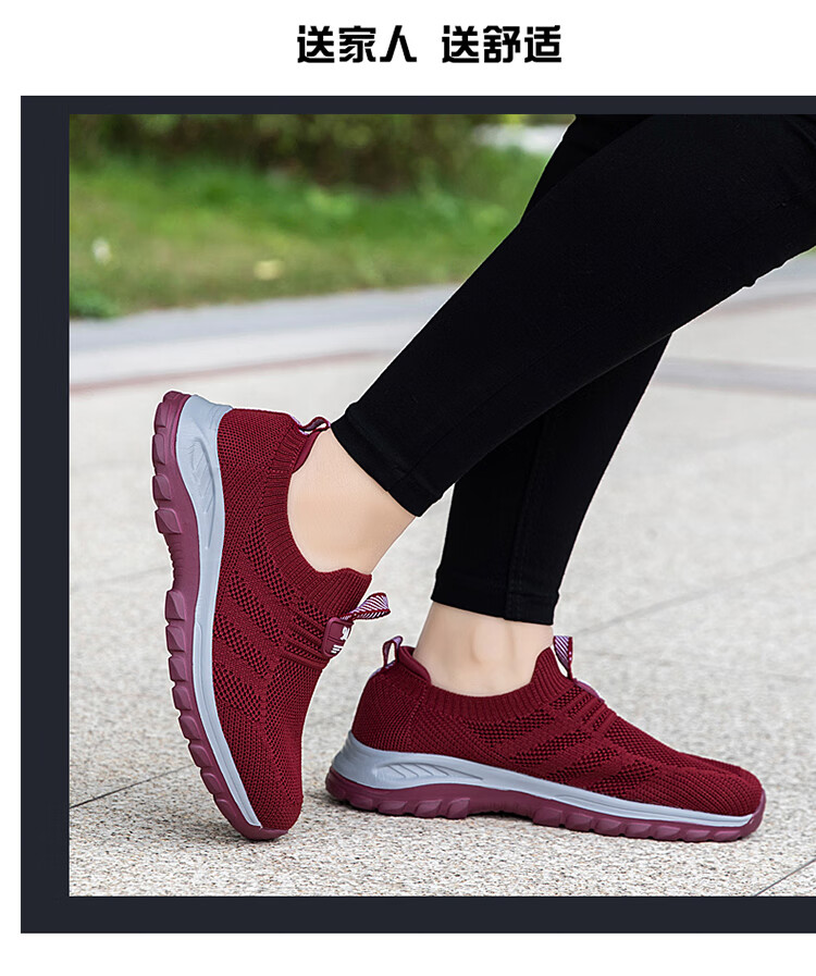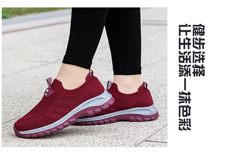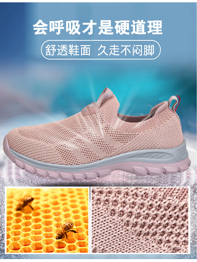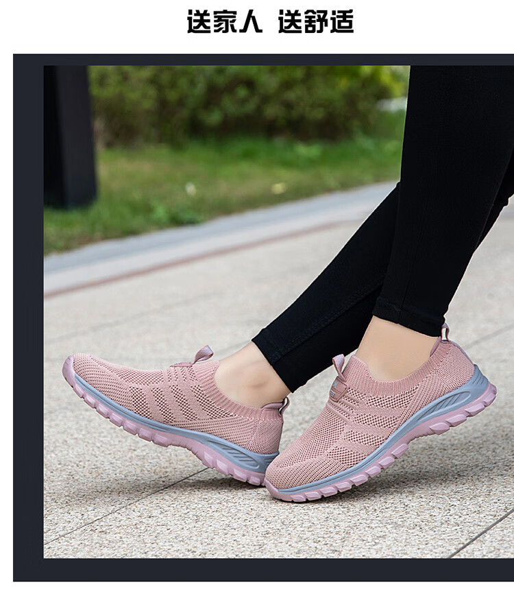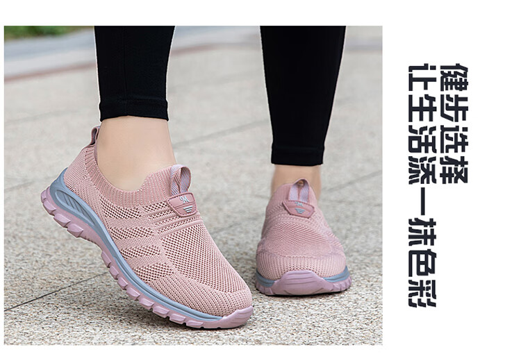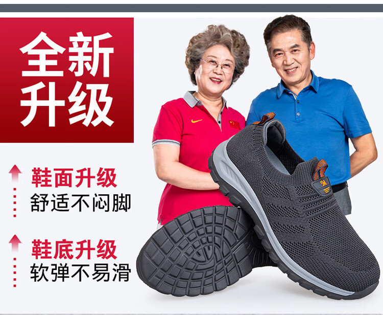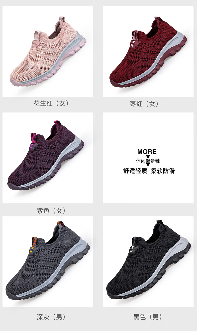 足力健大师老人鞋女士夏季软底防滑妈妈运动鞋轻便舒适一脚蹬中老年爸爸鞋男 9216女款花生红 35