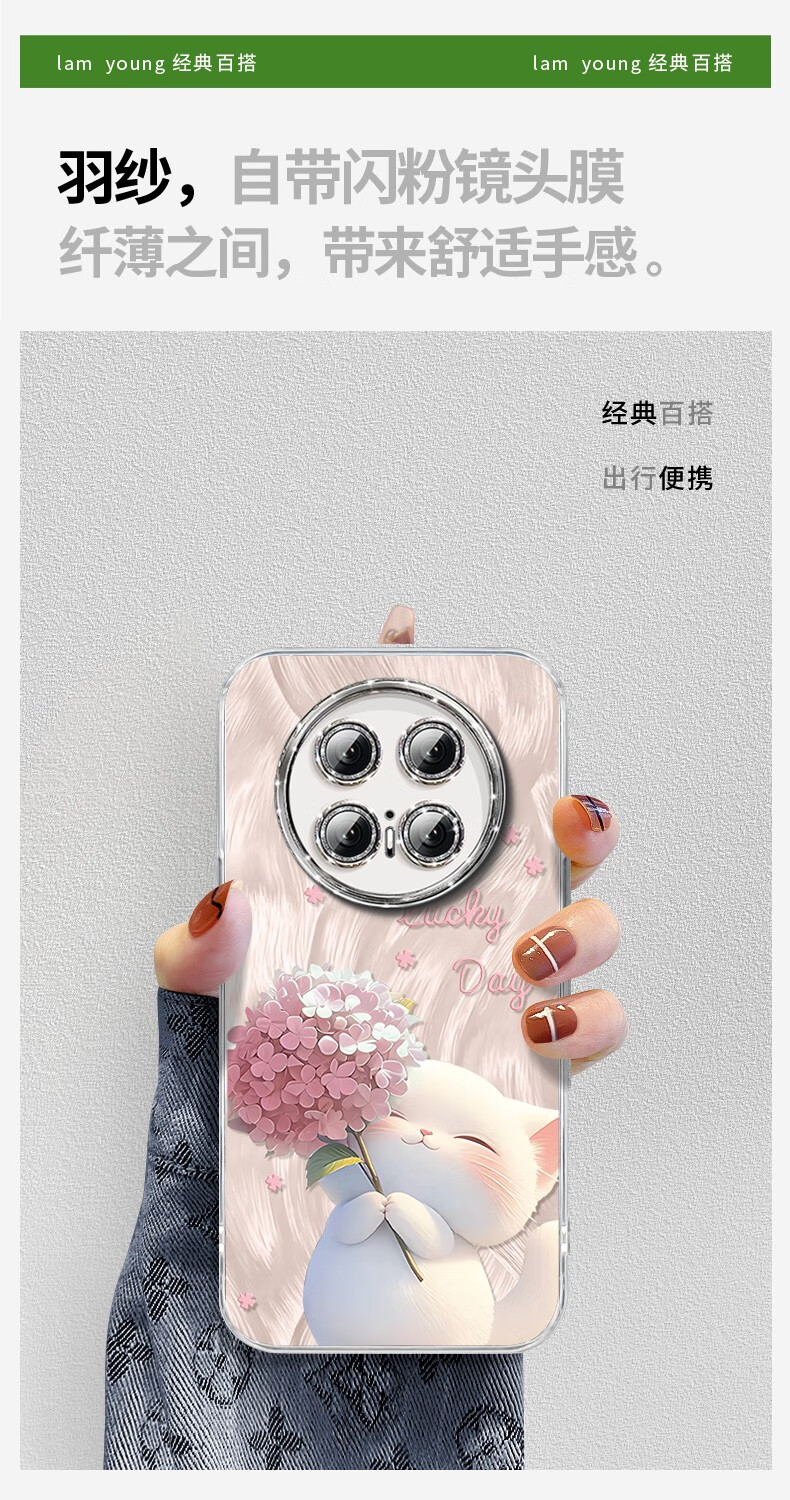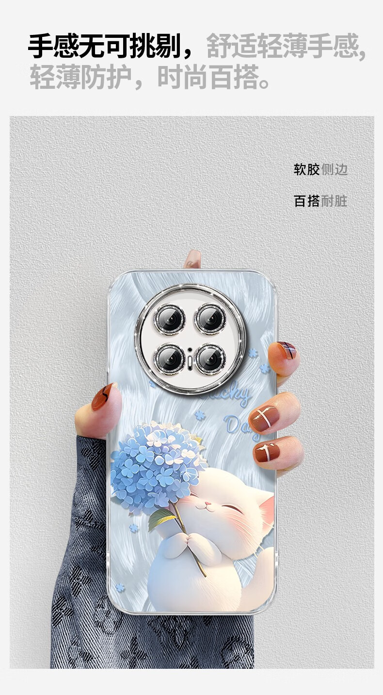 XMSJ绣球猫适用华为mate70手机壳mete70pro的感m70系列全包镜头膜mt70 NM15657绣球猫蓝自带电镀闪粉镜 华为Mate70