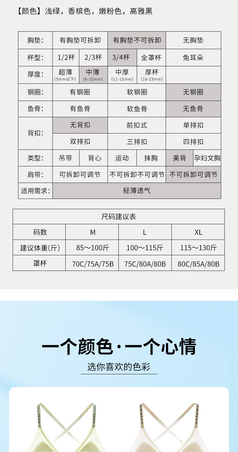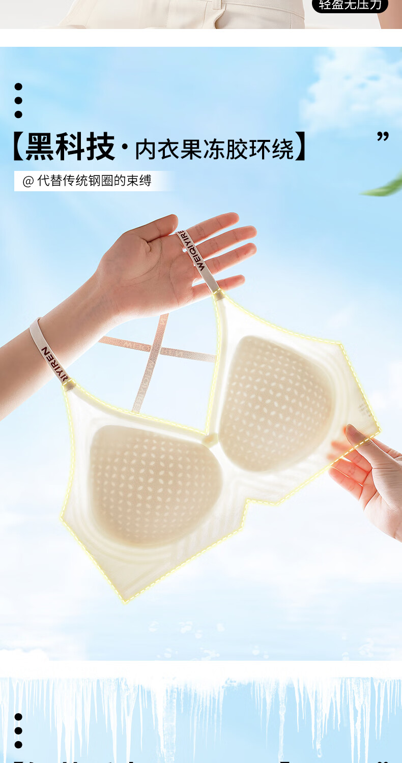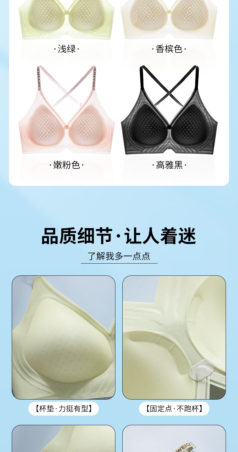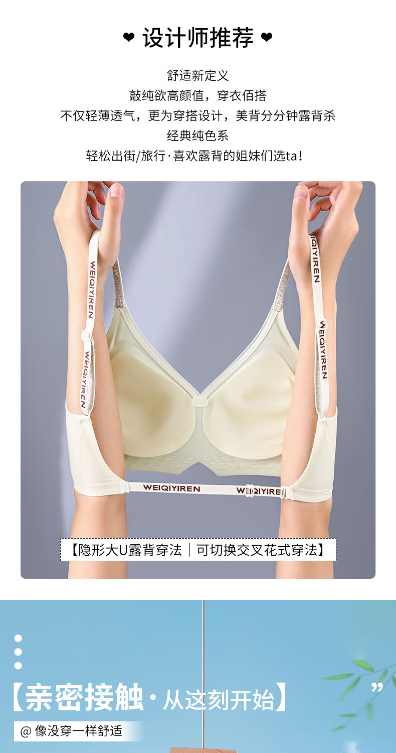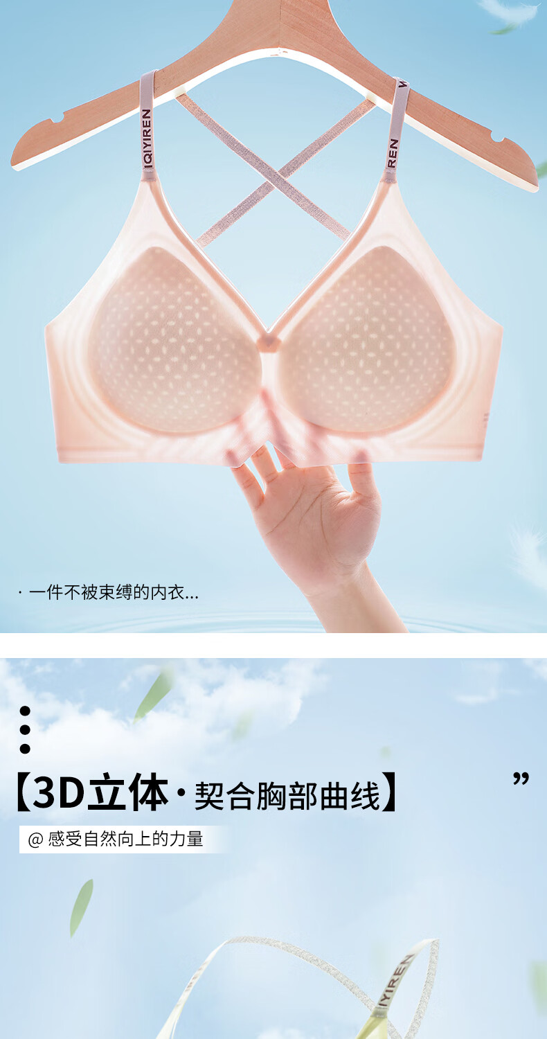 已朵美背内衣女夏季薄款性感交叉肩带小胸聚拢防滑防走光文胸罩 香槟色 L 【建议体重100~115斤】