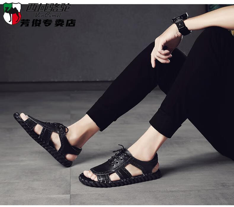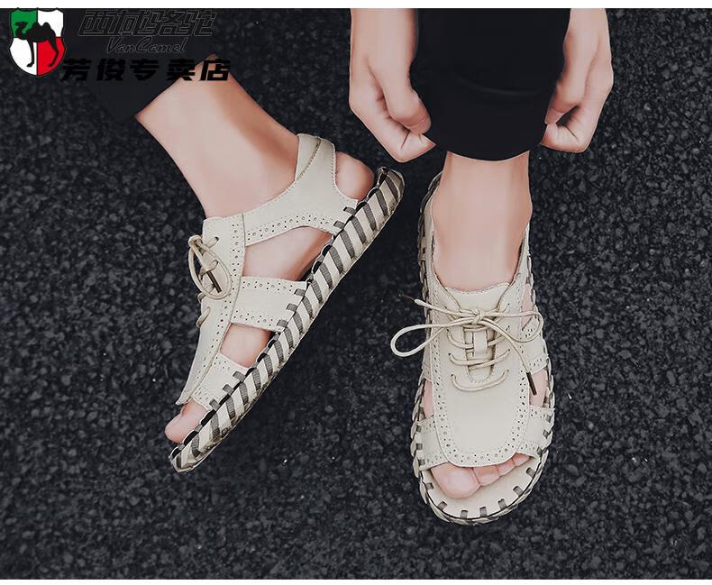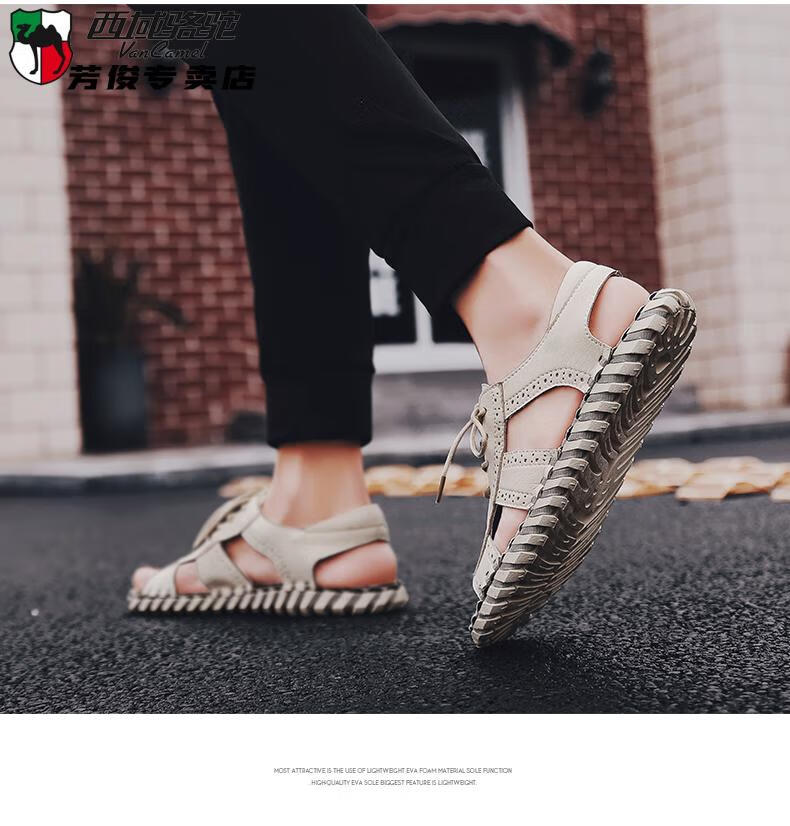 西域骆驼(VANCAMEL)凉鞋男夏季2025新款韩版潮流户外休闲男士凉鞋青年度假沙滩鞋 9926米色 38