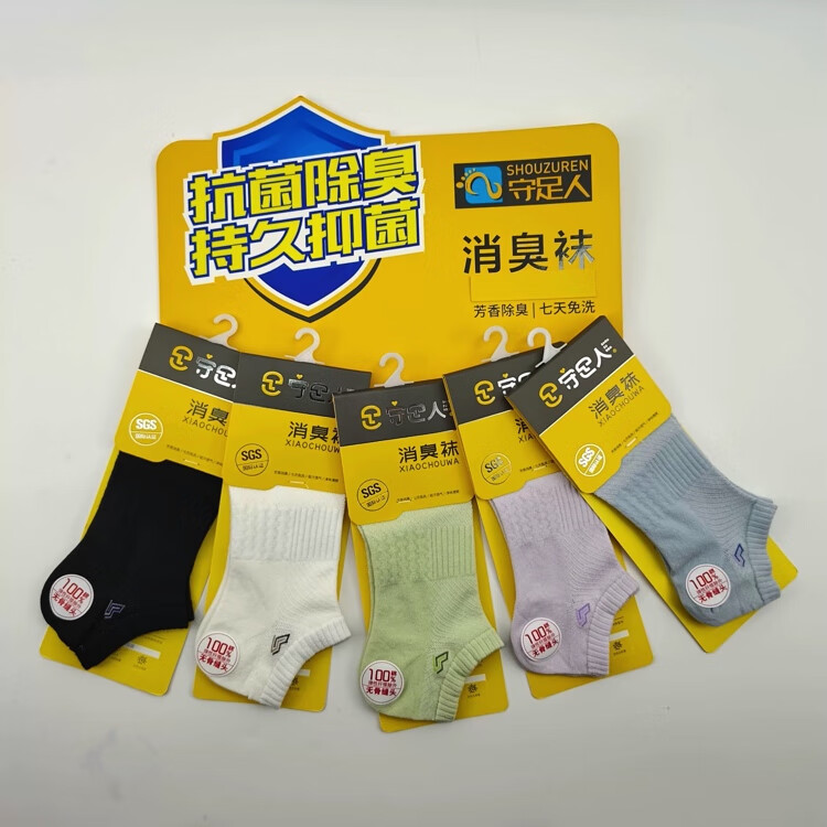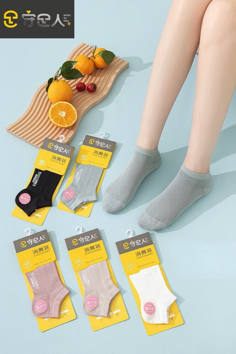 守足人袜子女夏季薄款纯色糖果色女袜透气浅口女士船袜芳香除臭七天免洗 3527春夏网眼款 6双 均码 女士网眼消臭袜六双装