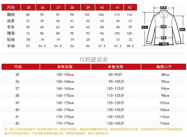 China (cm) 160-165/84-86 165-170 / 88-90 167-172 / 92-96 168-173 / 98-102 170-176 / 106-110