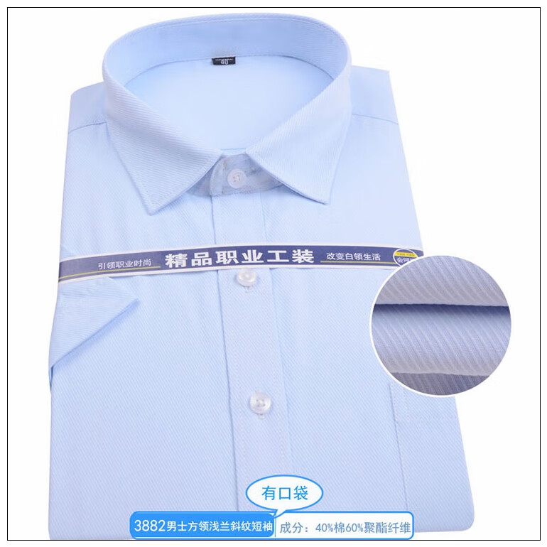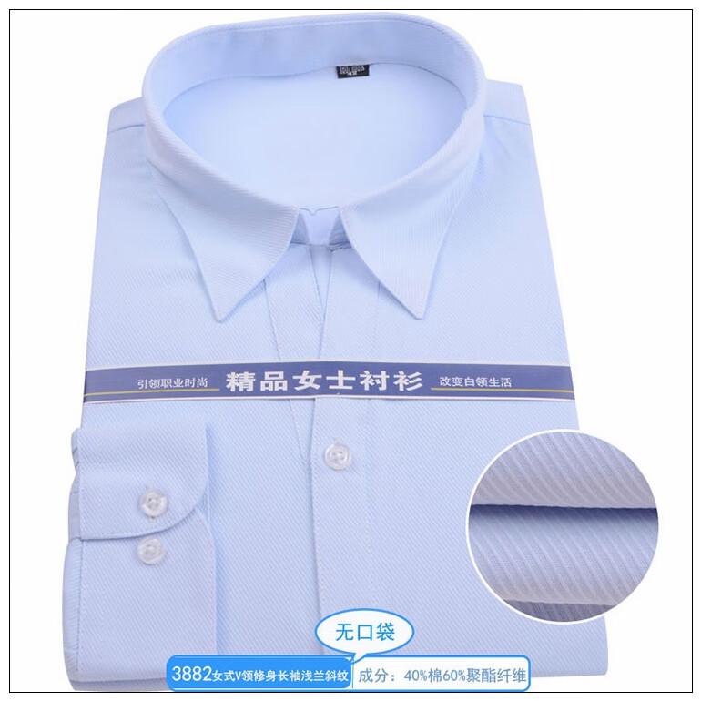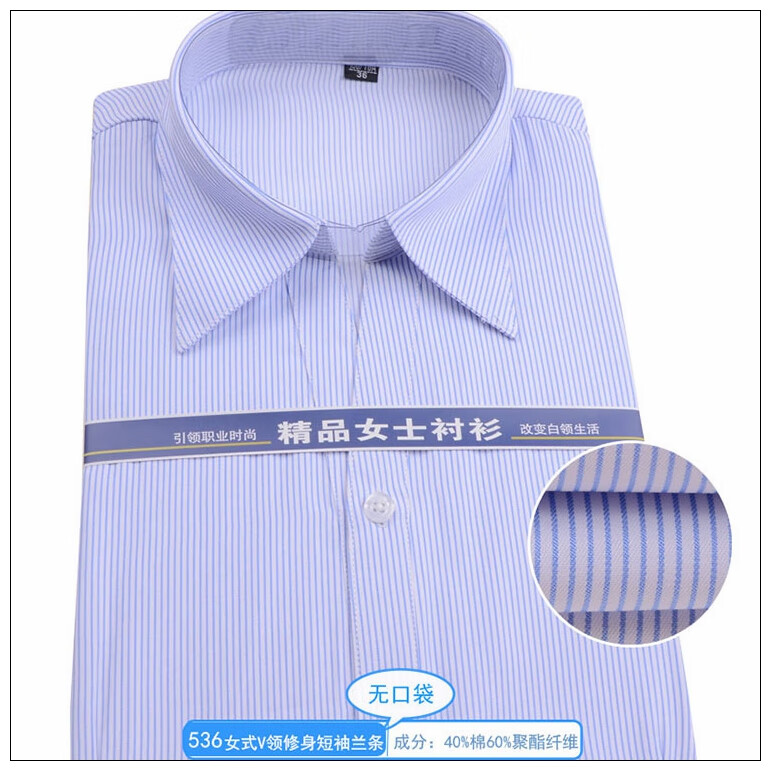 He Jiagong CCB Arbeitskleidung Damen formeller Kragen weißer Hintergrund blau vertikal gestreiftes Kurzarmhemd quadratischer Kragen schmale Bank Arbeitskleidung 3882 Damen V-Ausschnitt schmaler hellblauer Twill lange Ärmel 42 (180_100A)