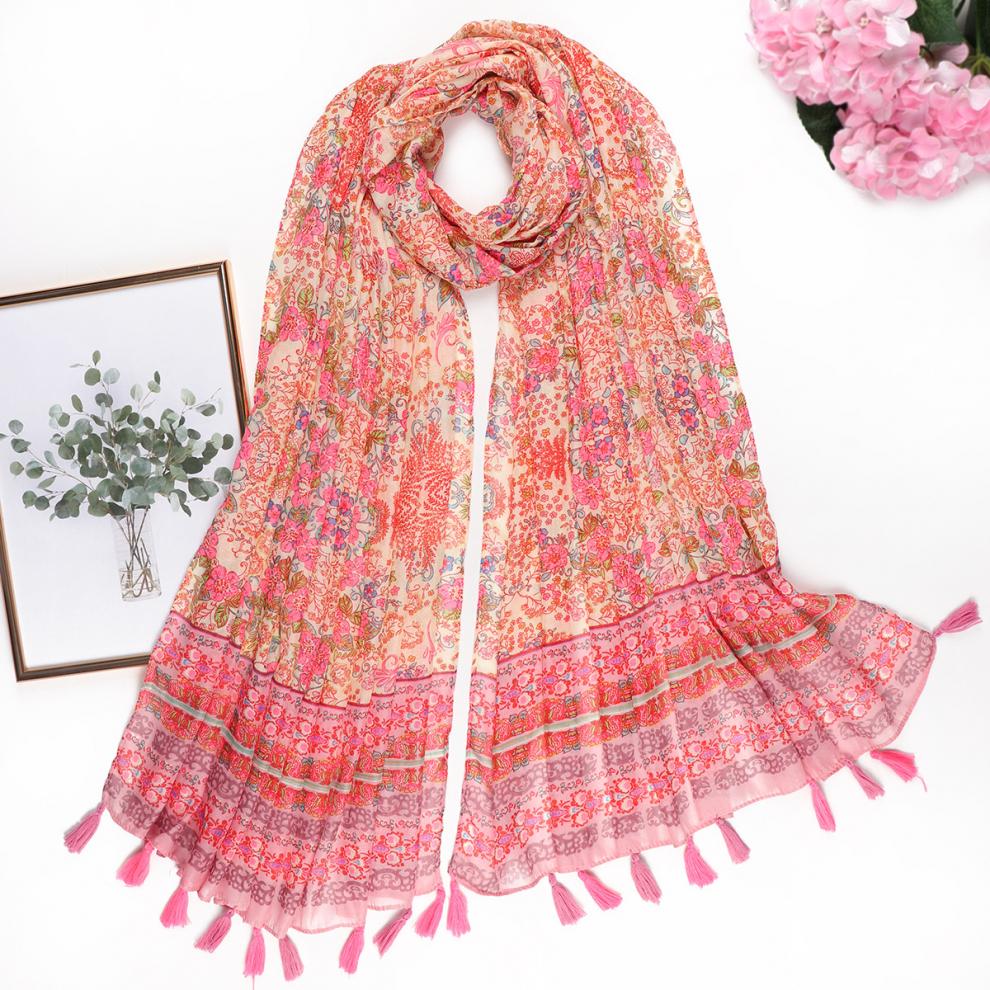 韩版新款多色多款印花长巾,百搭时尚流苏丝巾女,度假旅游沙滩巾 小清新 175cm以上