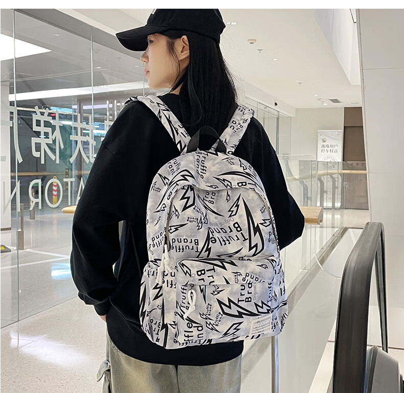 Schoolbag female ins style Korean version Harajuku large capacity graffiti junior high school student backpack college student high school student backpack white
