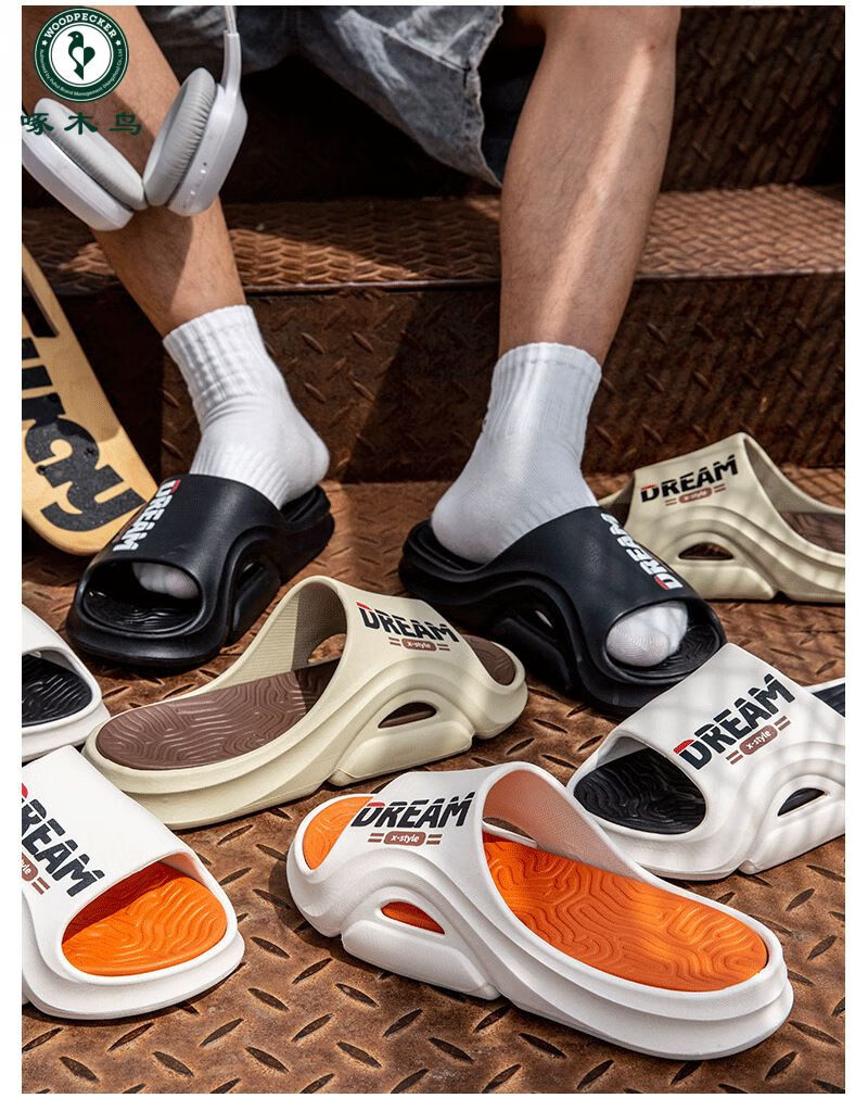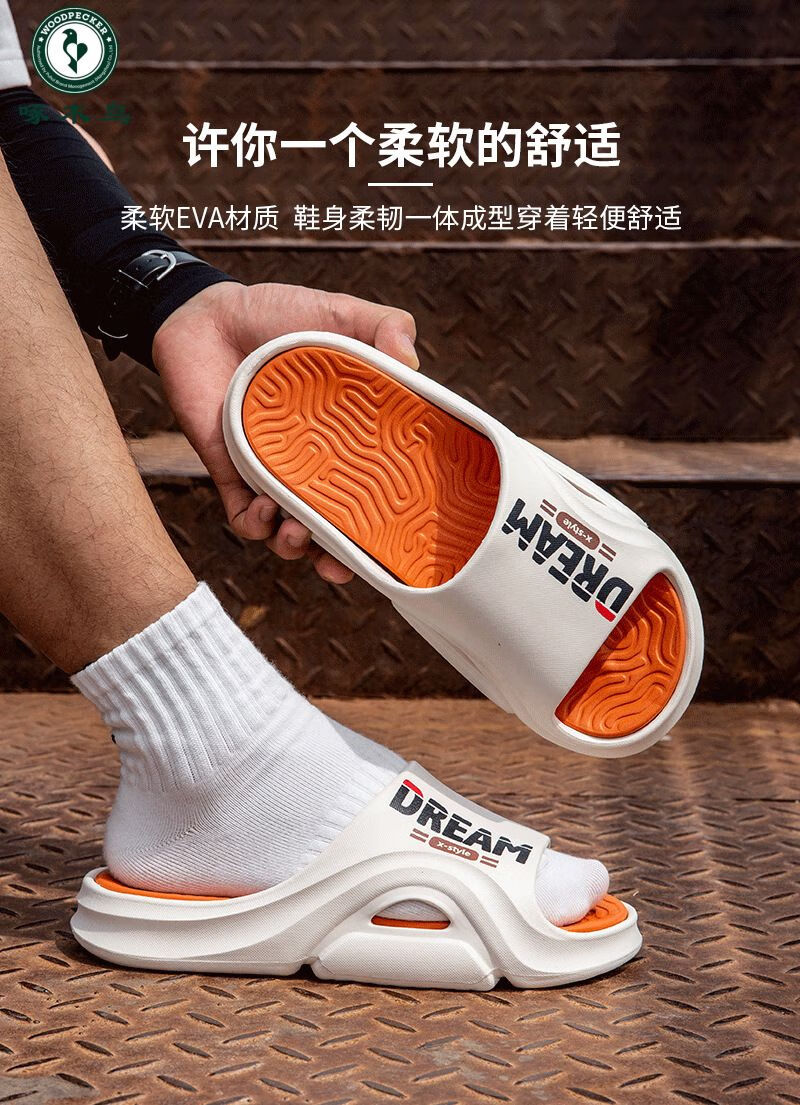 Woodpecker 2025, новые летние мужские тапочки весны и лета, верхняя одежда на плоской подошве, модные и модные мужские сандалии, нескользящая, прочная и мягкая подошва, бело-оранжевый 40 41 (подходит на рост 39/40 футов).