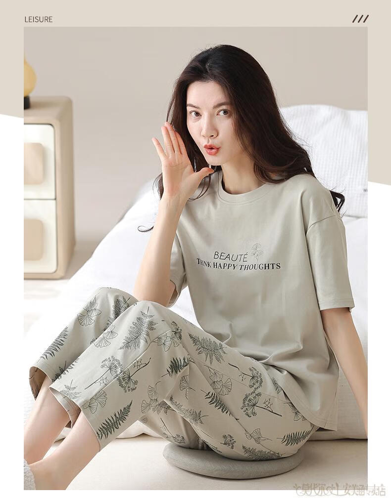 莫代尔睡衣女夏季2025年新款全棉套装短袖卡通长裤韩版可外穿家居服 Y9717 M (建议75-95斤)