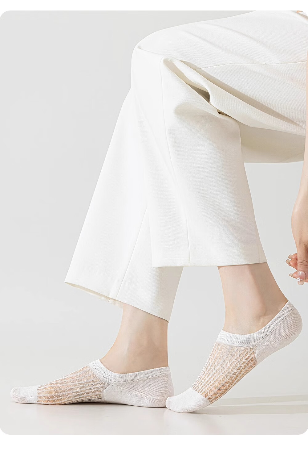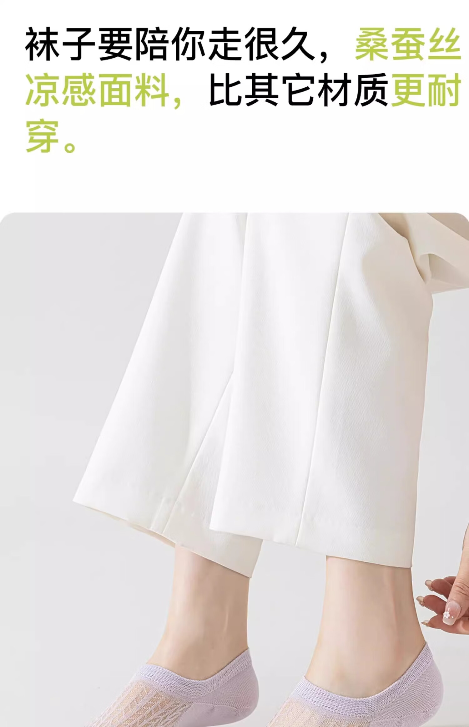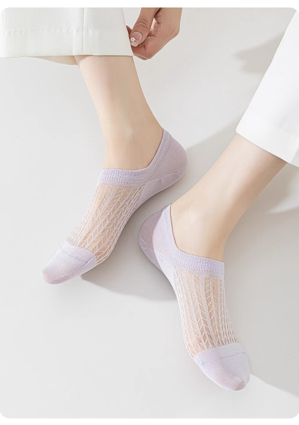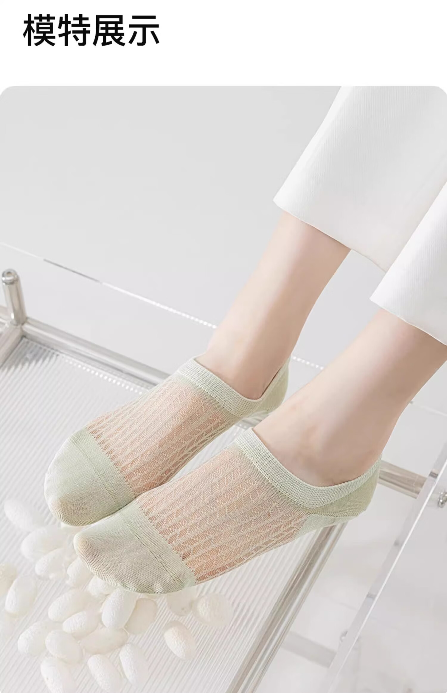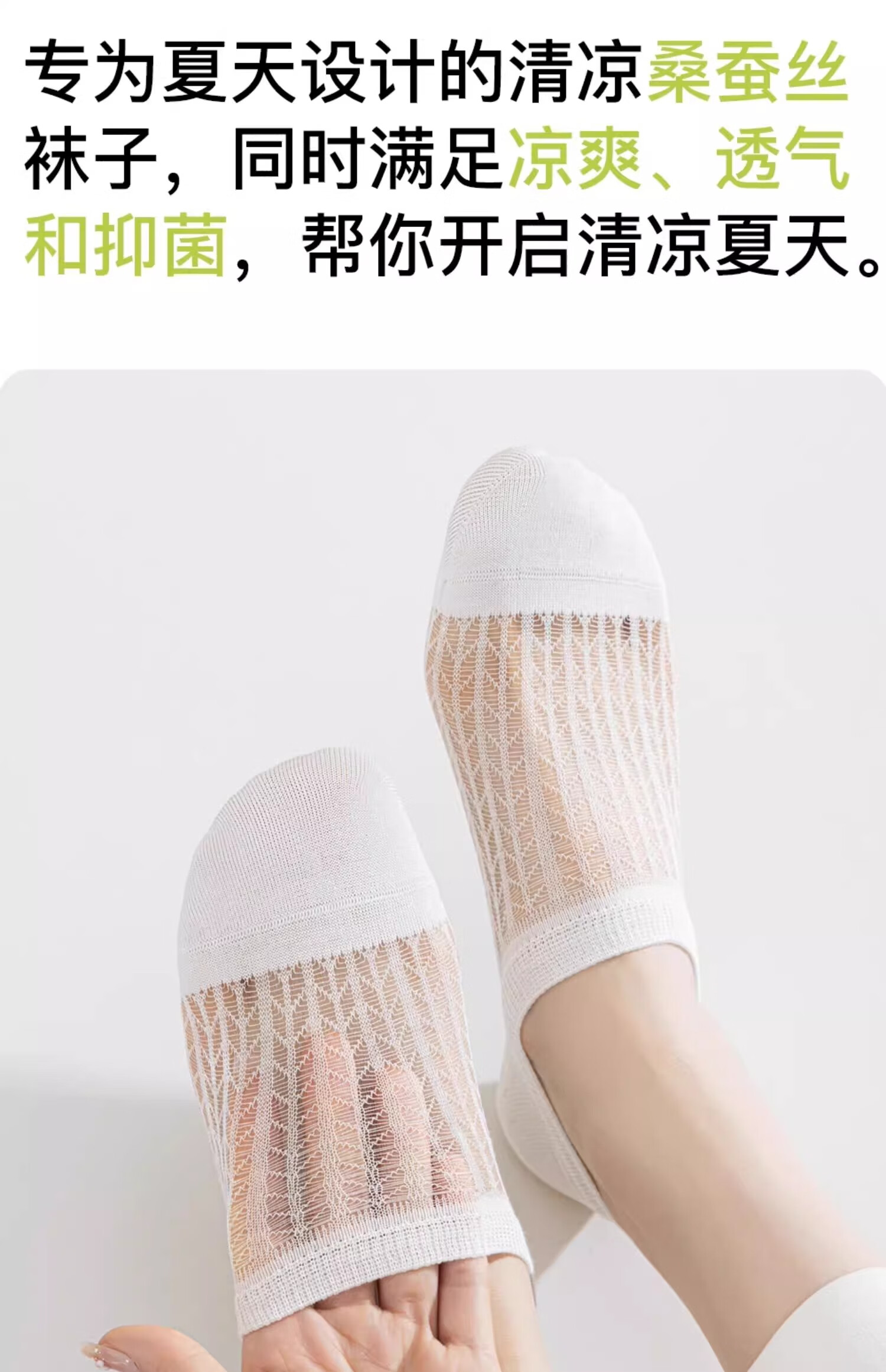 妮轻船袜女夏季薄款凉感桑蚕丝防滑不掉跟浅口隐形袜子女网眼透气短袜 白色3 均码