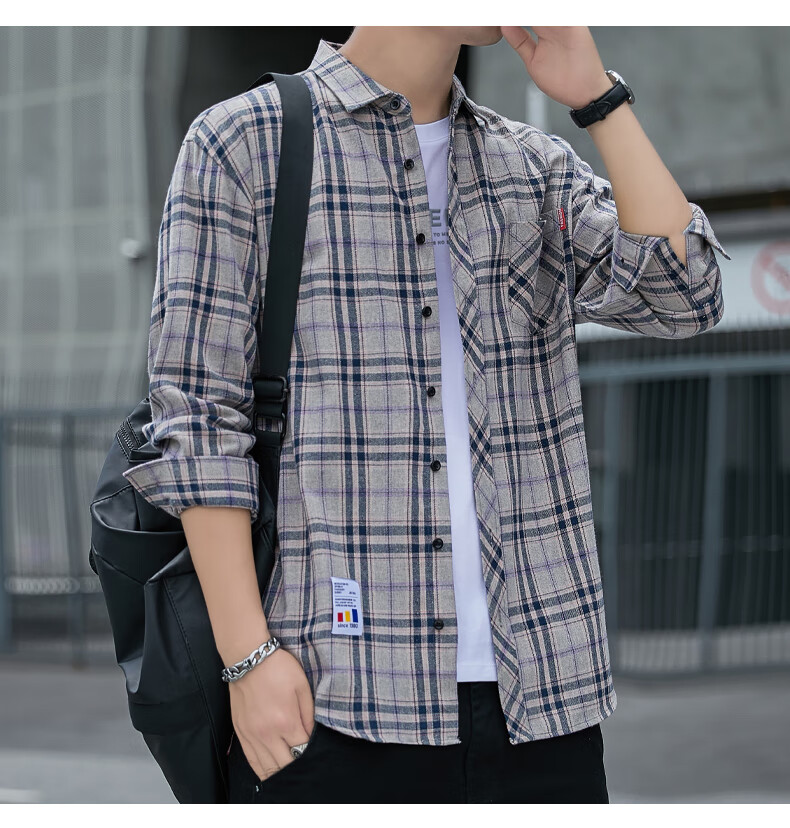 婉曼朵格子休闲衬衫男士春秋季长袖衬衣韩式上衣服复古宽松夏季薄款外套 12109绿色( 加绒 M 90-110斤