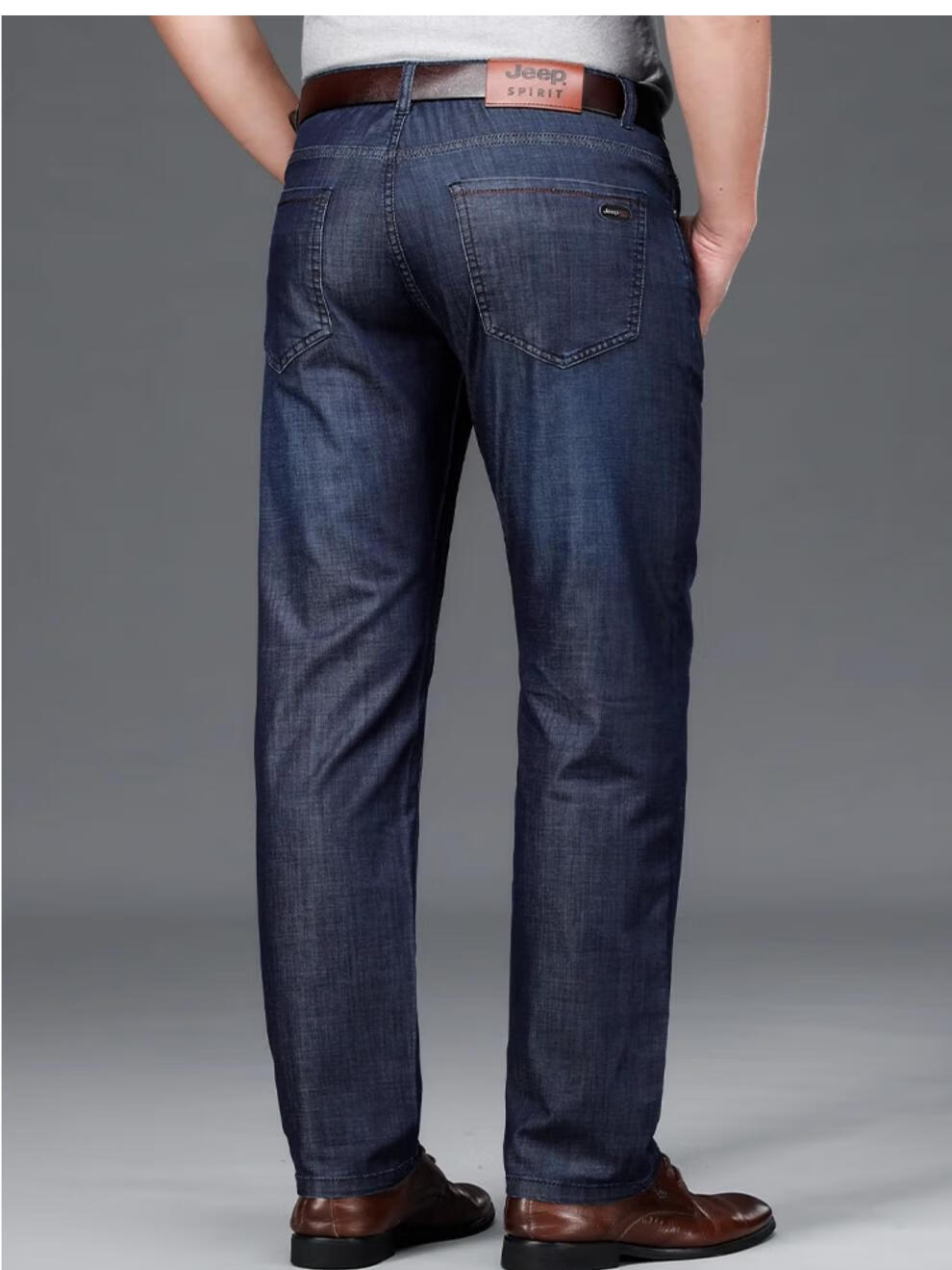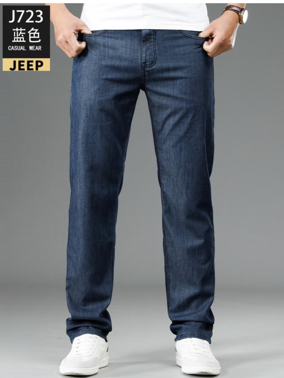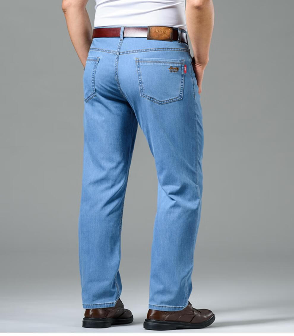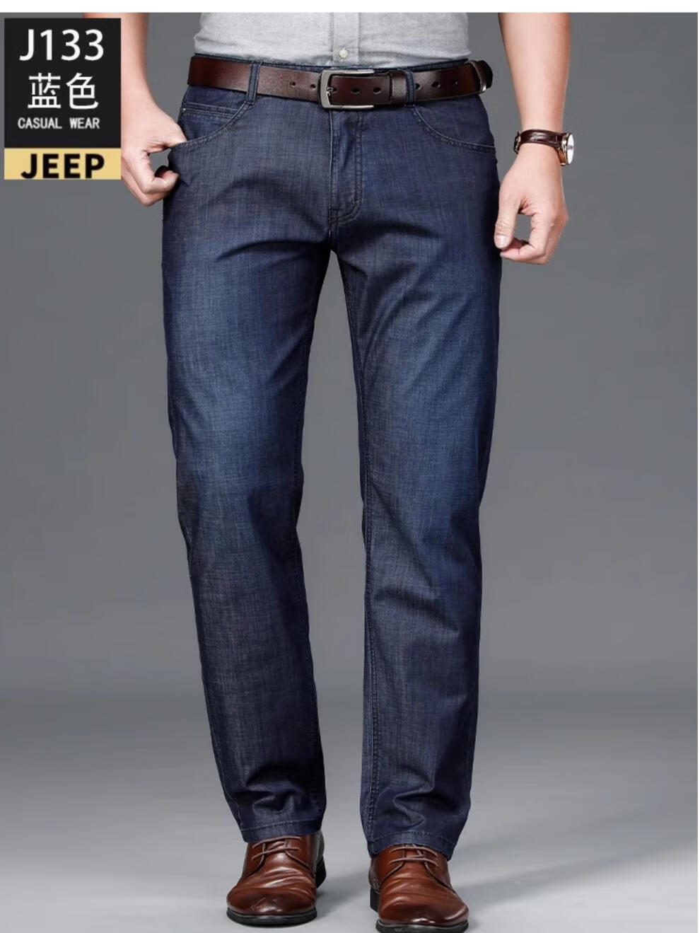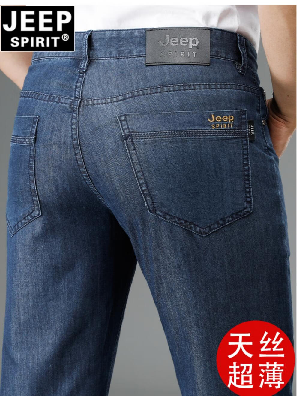 JEEP SPIRIT吉普正品天丝牛仔裤夏季宽松高腰直筒男裤中老年高端长裤子春秋季 蓝色-J723-天丝 22.1莱赛尔 29 -2尺2腰围