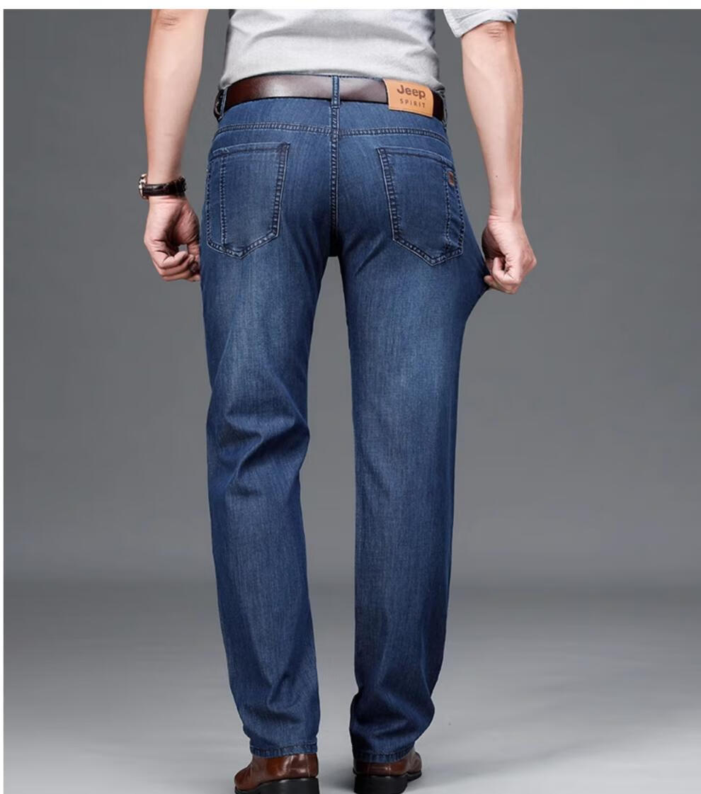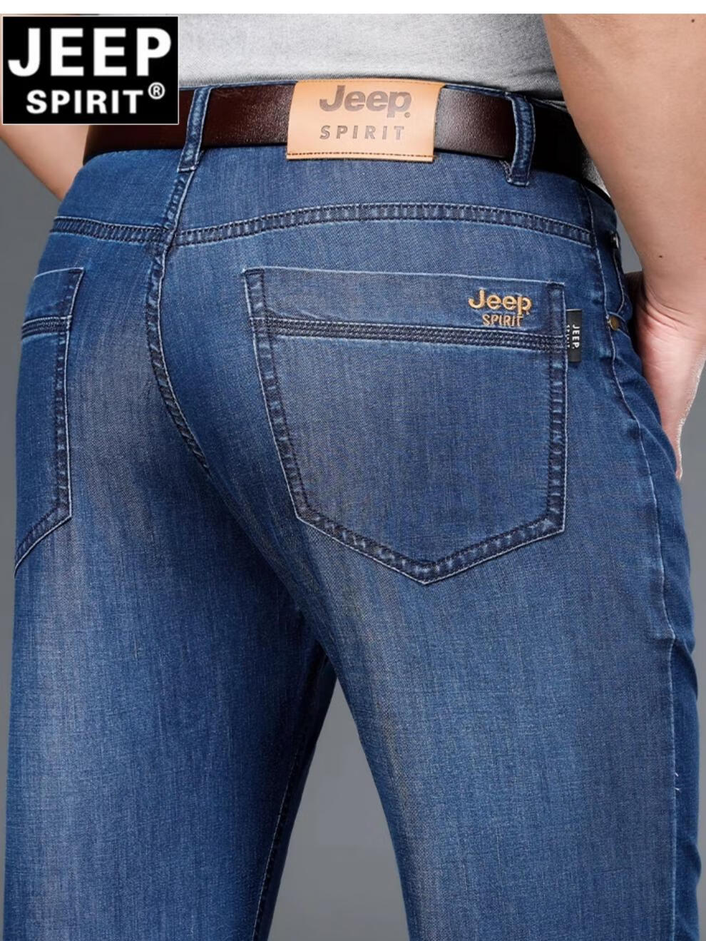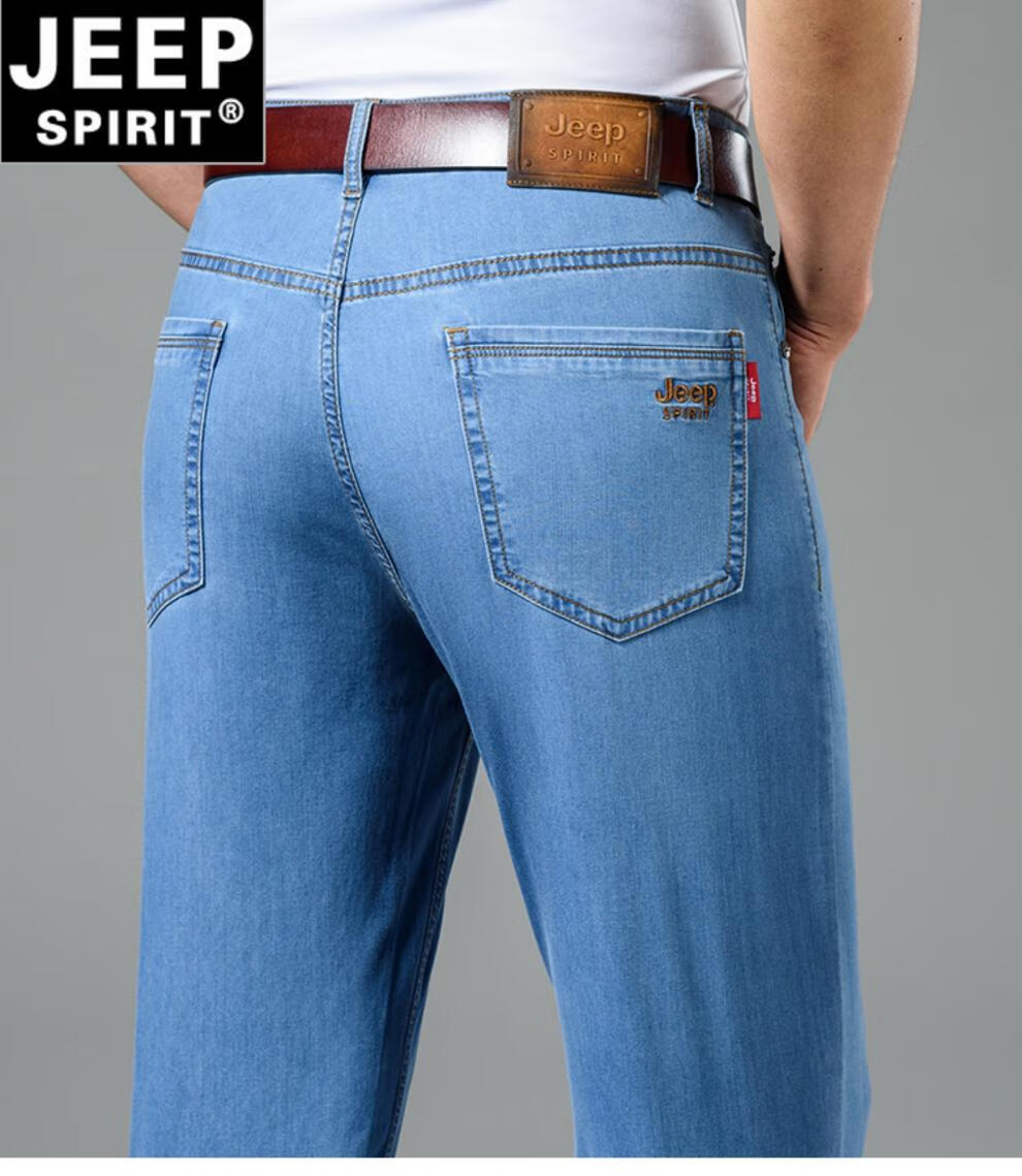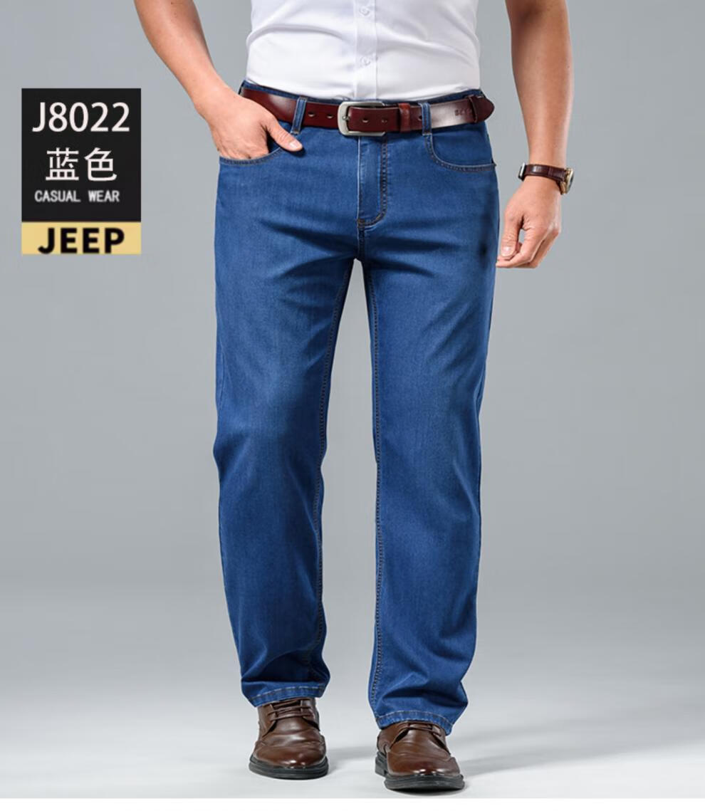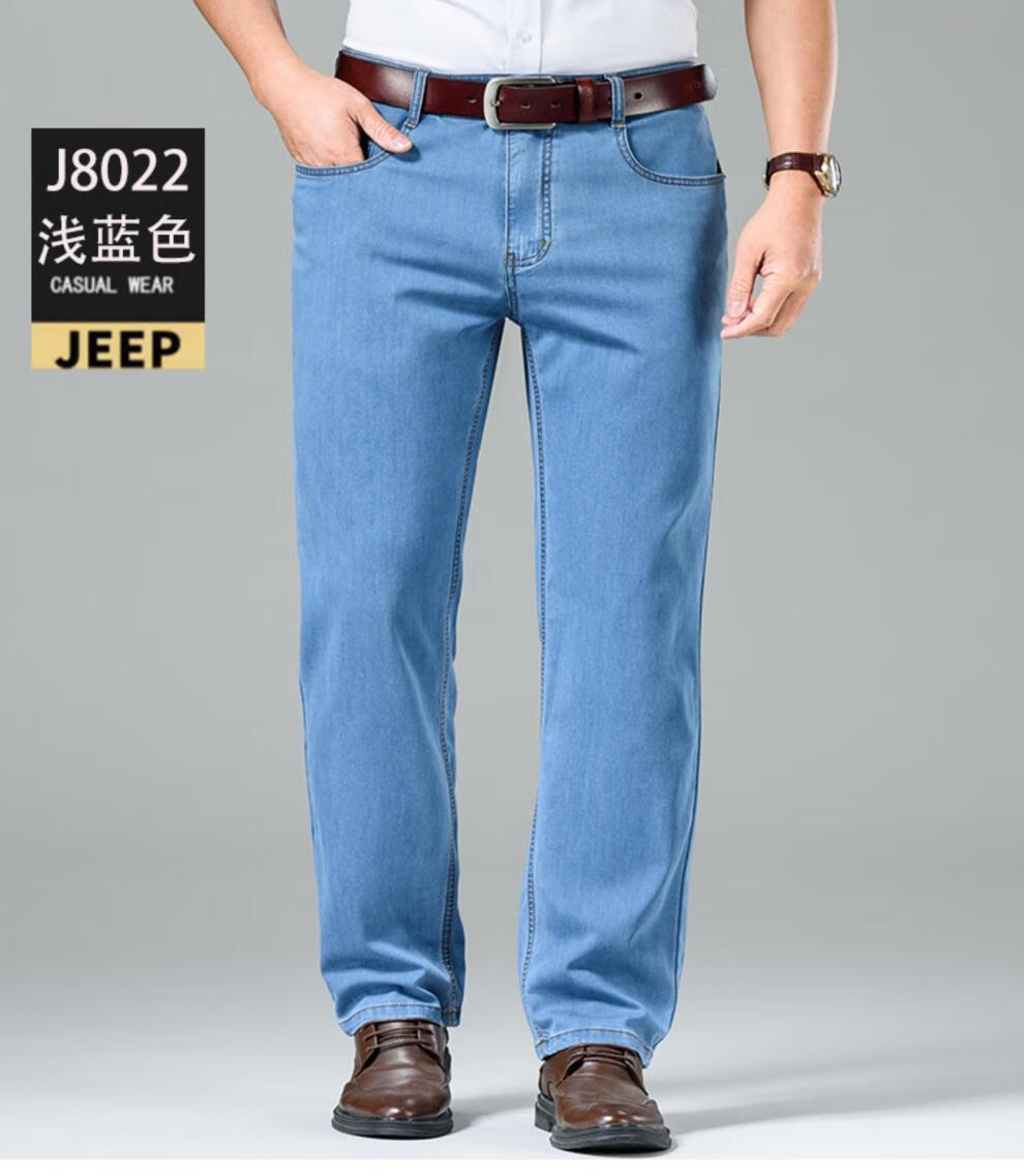 JEEP SPIRIT吉普正品天丝牛仔裤夏季宽松高腰直筒男裤中老年高端长裤子春秋季 蓝色-J723-天丝 22.1莱赛尔 29 -2尺2腰围