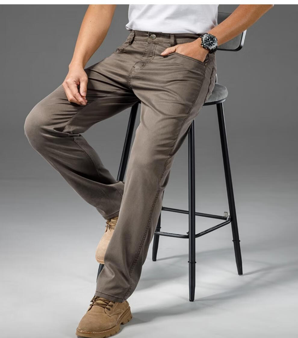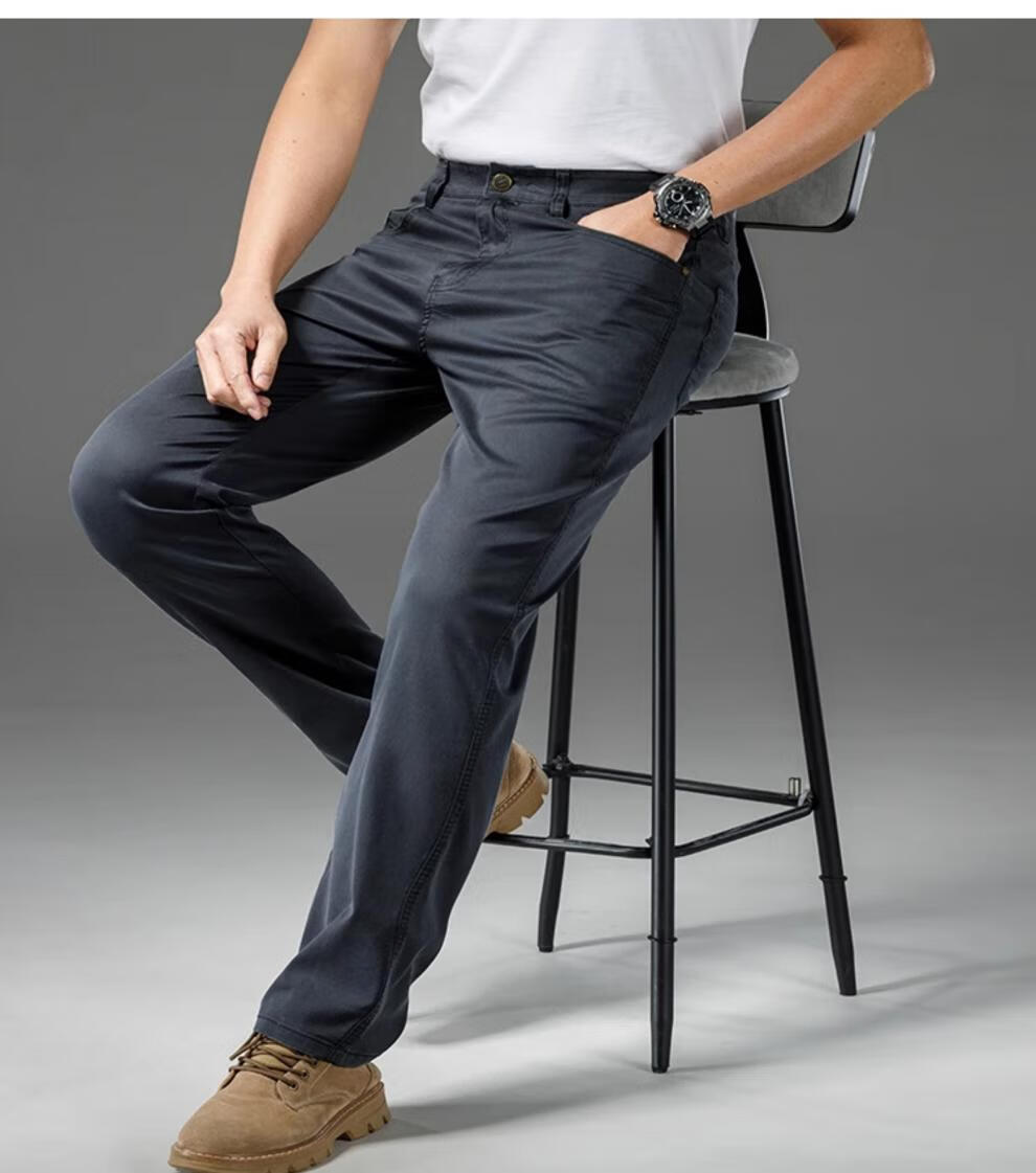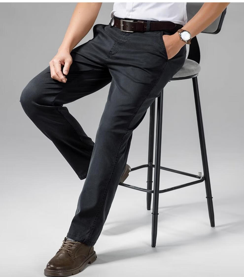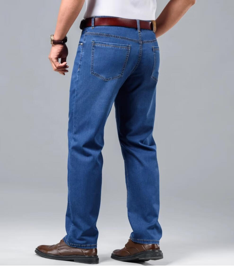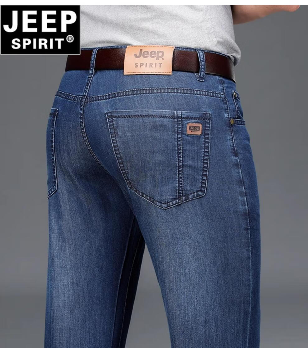 JEEP SPIRIT吉普正品天丝牛仔裤夏季宽松高腰直筒男裤中老年高端长裤子春秋季 蓝色-J723-天丝 22.1莱赛尔 29 -2尺2腰围