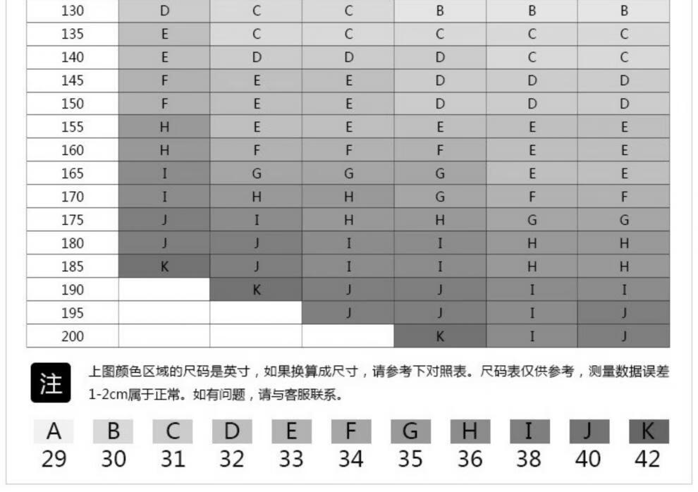 China (cm) 160-165/84-86 165-170 / 88-90 167-172 / 92-96 168-173 / 98-102 170-176 / 106-110