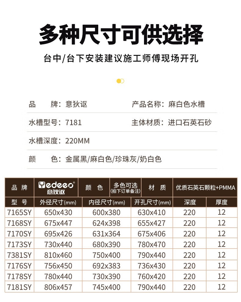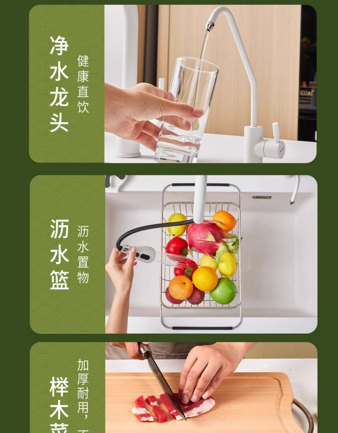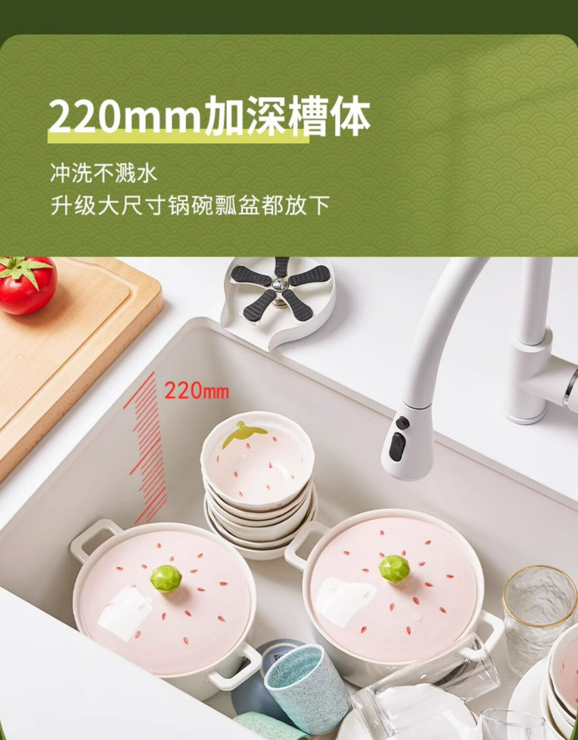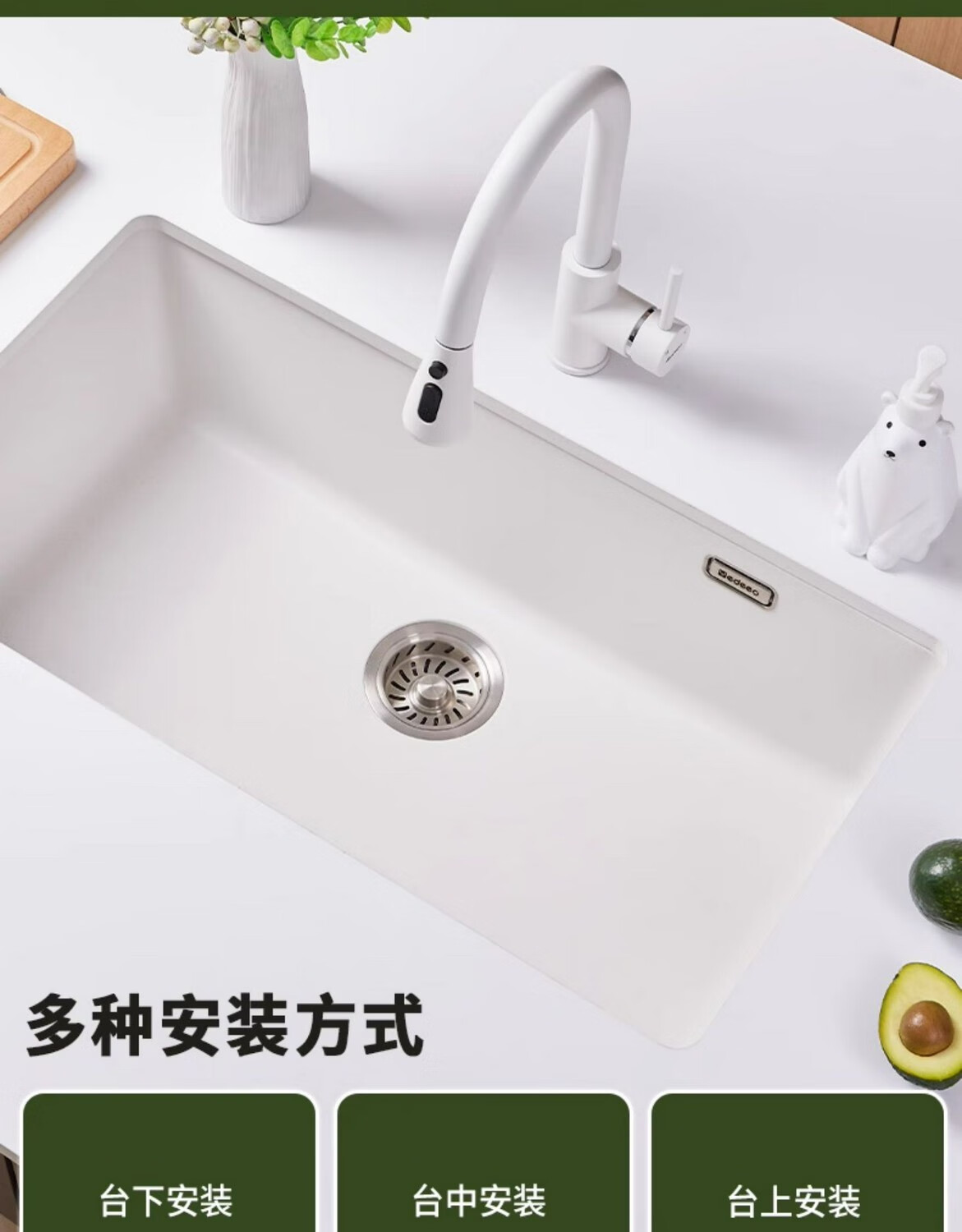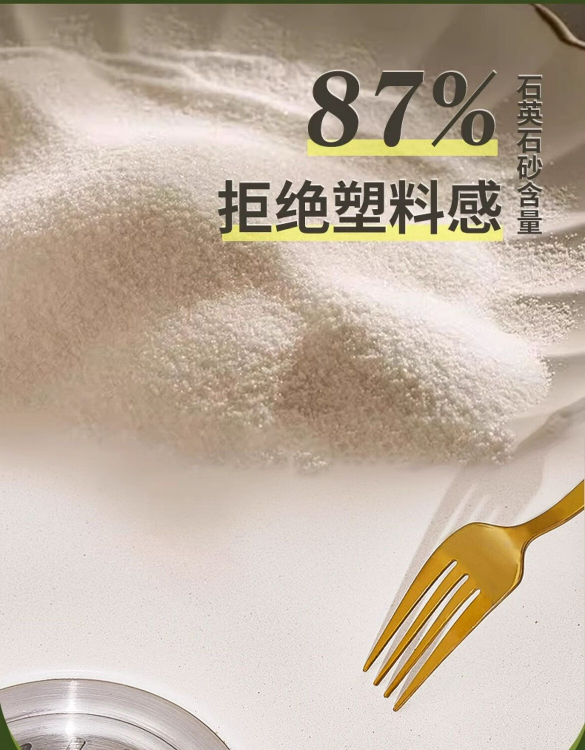 意狄讴石英石厨房水槽洗菜盆花岗岩洗菜盆水池大单槽洗碗池7170 限时下单送沥水篮 与台下盆加固