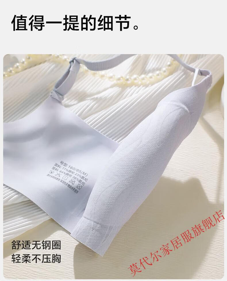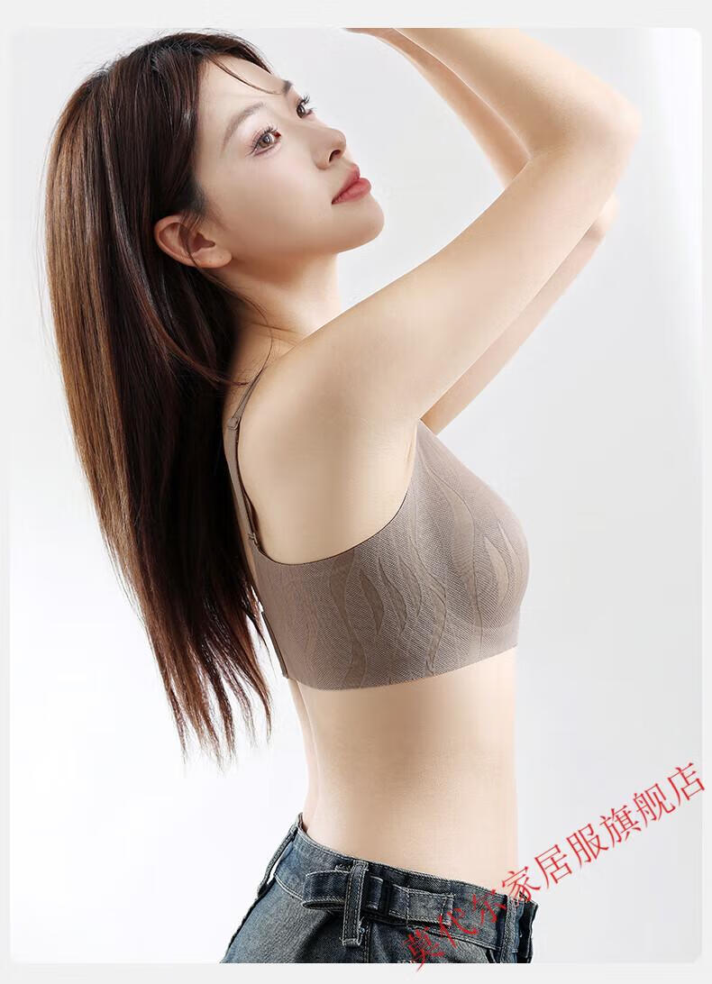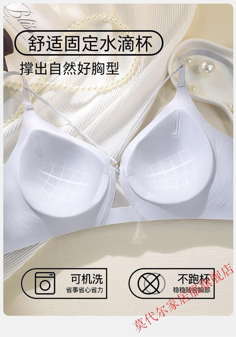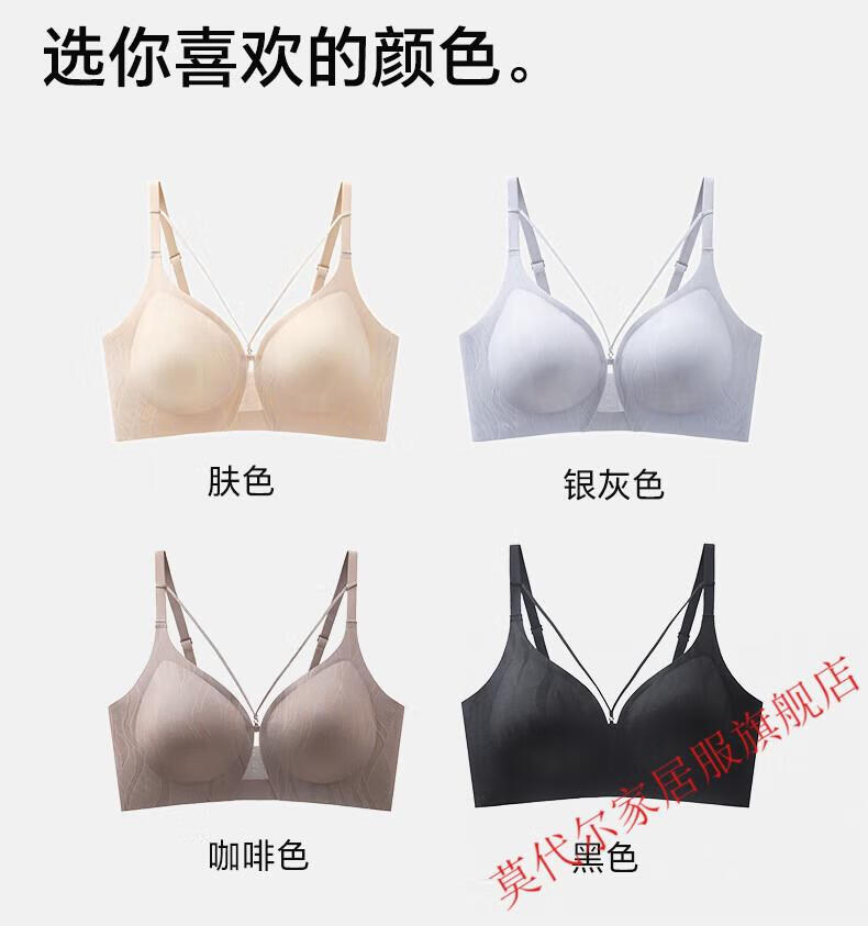 莫代尔山茶升杯无痕内衣女士薄款小胸聚拢上托大码凉感收副乳美背文胸罩 肤色 M 建议90-105斤