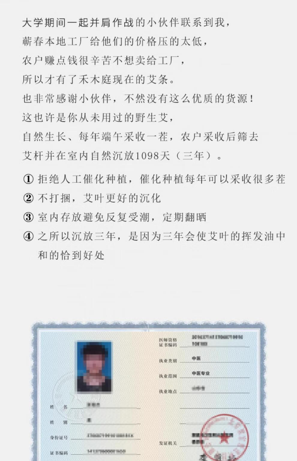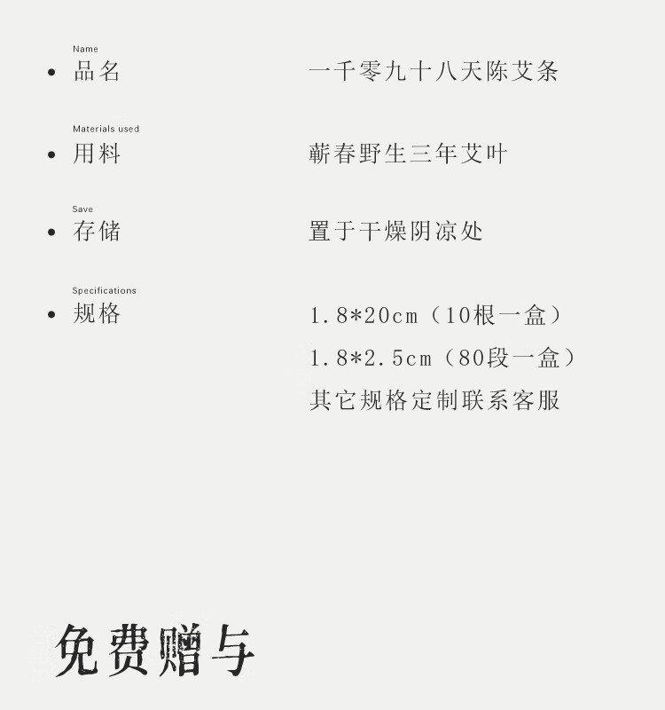 1098 Tian Qichun wild moxa stick 1.8cm three-year-old hand-held warm moxibustion column 5 to 1 moxa leaf moxa velvet 1.8*20cm (10 sticks per box)