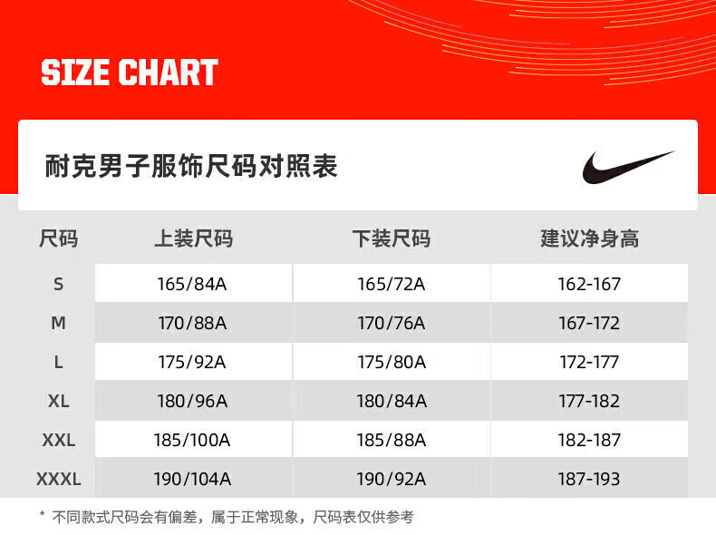 China (cm) 160-165/84-86 165-170 / 88-90 167-172 / 92-96 168-173 / 98-102 170-176 / 106-110