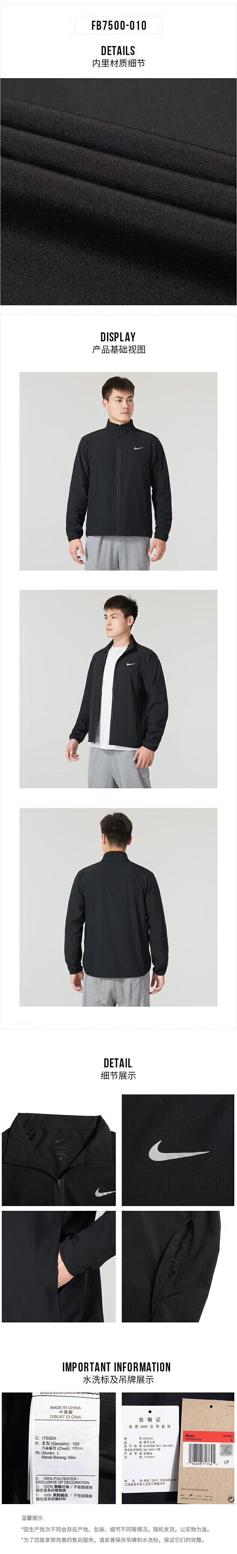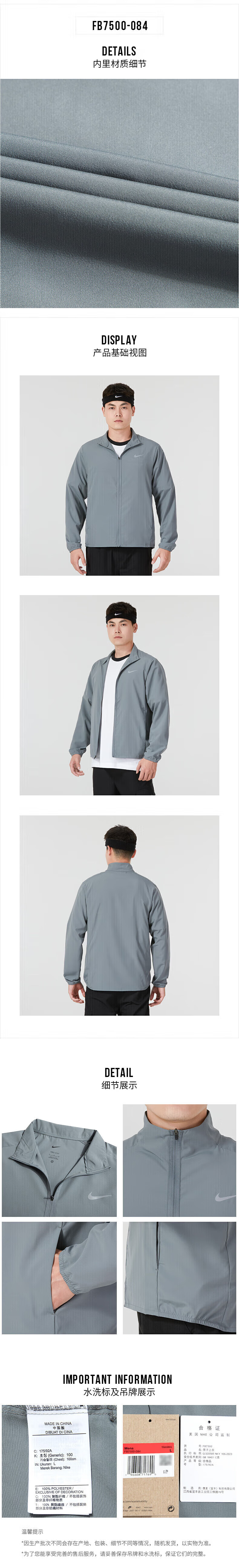 Nike (NIKE) veste de magasin officiel nouveaux vêtements de sport de course pour hommes tissés vêtements décontractés respirants veste à col montant à séchage rapide pour hommes FB7500-084-tissé mince M 170/88A/recommandé 120-130Jin Jin équivaut à 0,5 kg