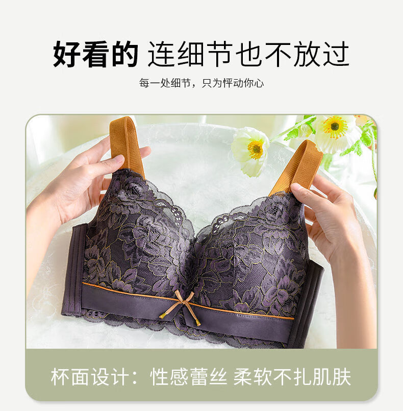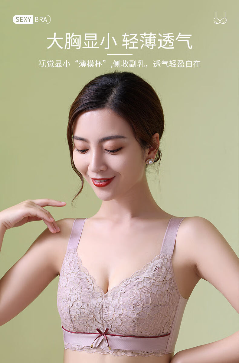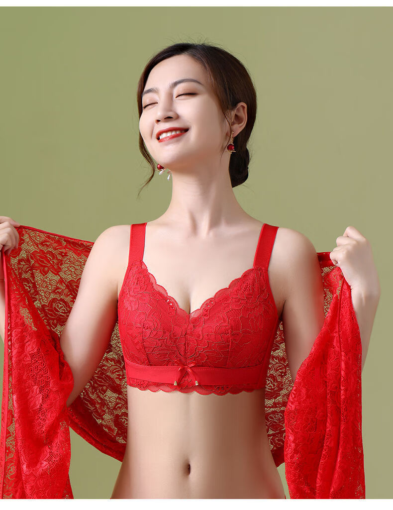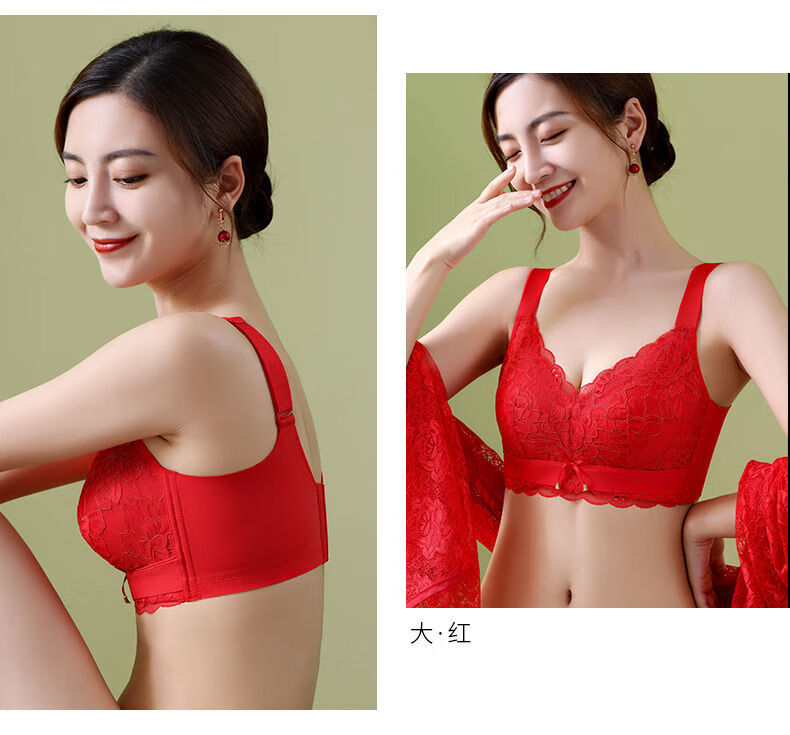 浪莎(LangSha)大码薄款乳胶内衣大胸显小提胸女聚拢无钢圈文胸调整型套装 【大红套装】 75B 34