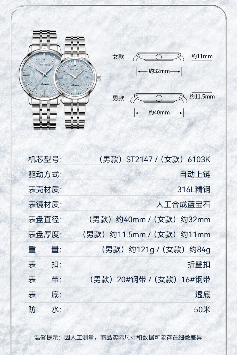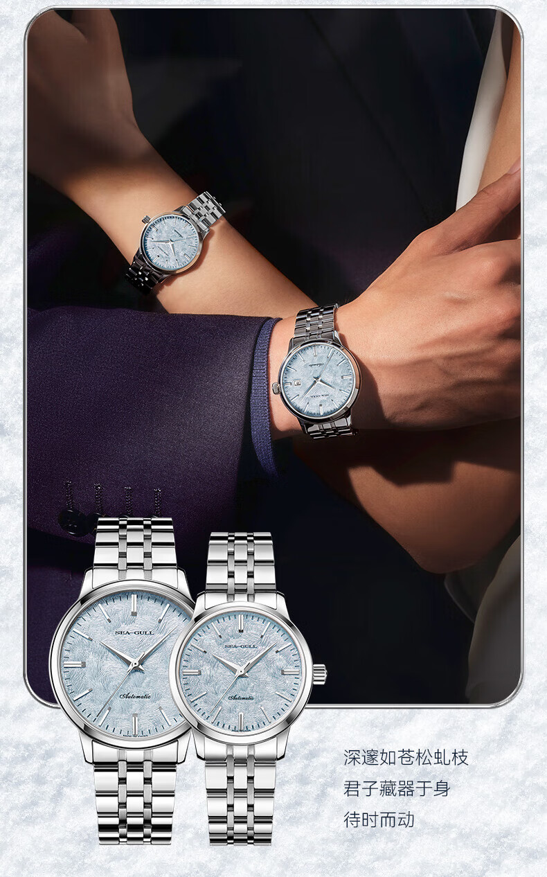 海鸥(SEAGULL)海鸥手表男士自动机械雪松经典商务防水腕表男士礼物6182 雪松青松对表-6182