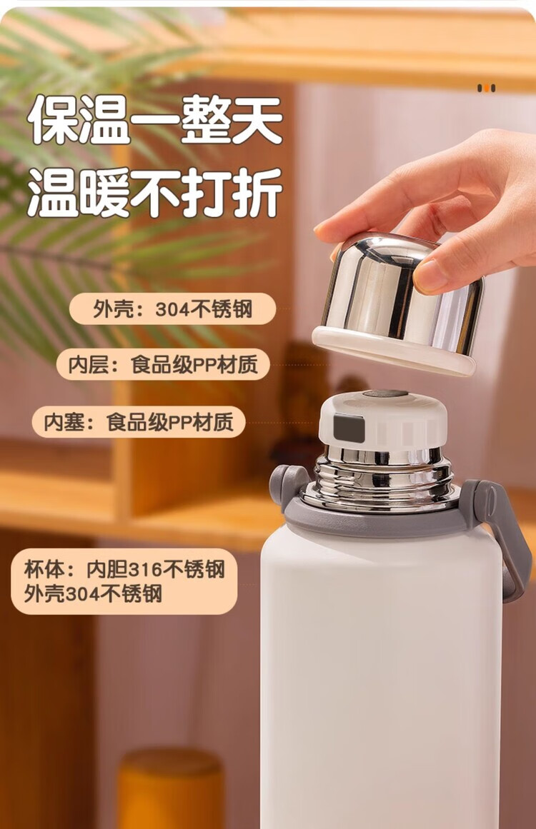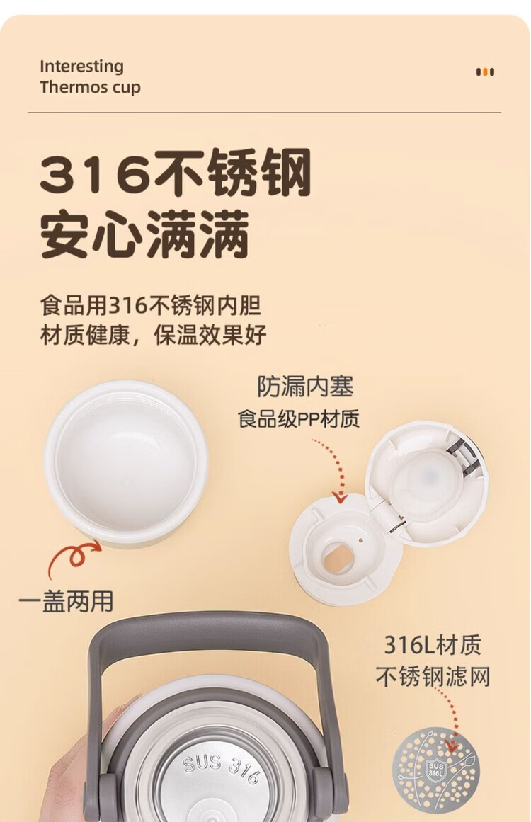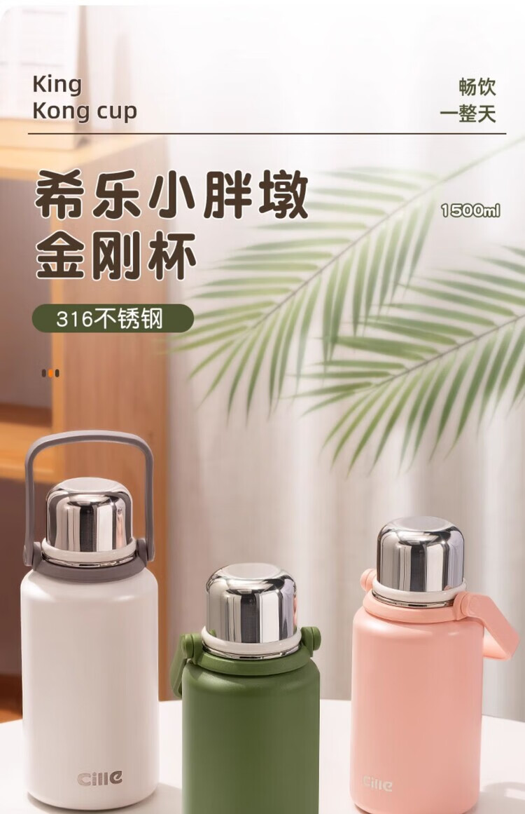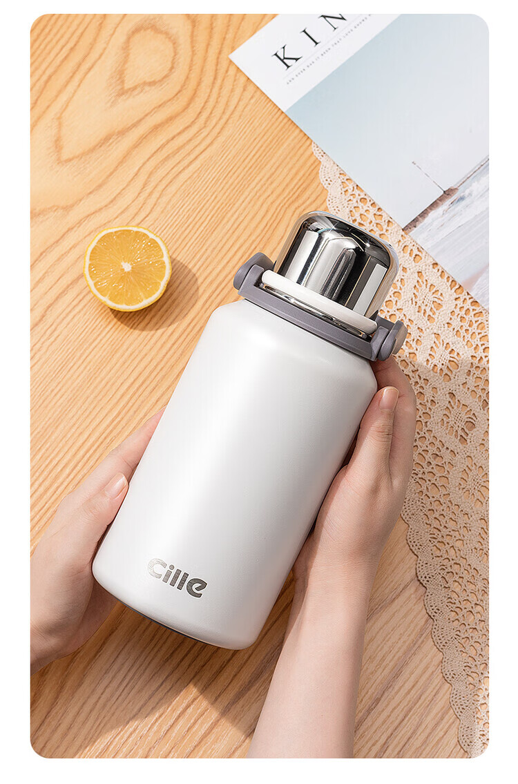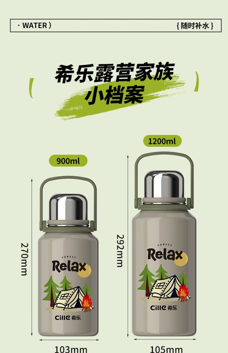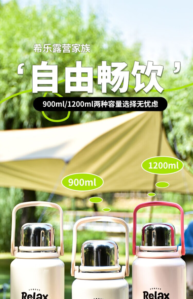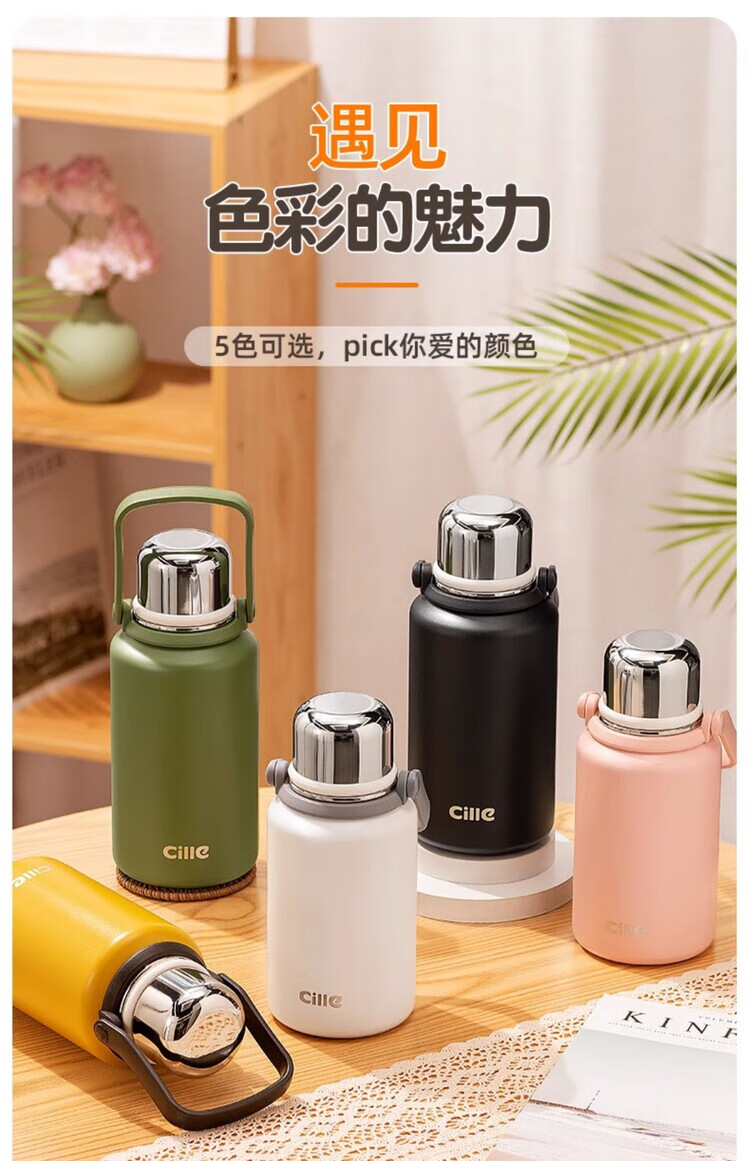 希乐(cille)保温杯大容量水杯男士316不锈钢泡茶杯子女儿童学生运动水壶 黑色900ml 【送杯套/背带+贴纸】含茶隔