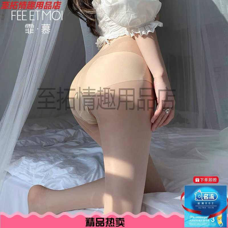 Feimu offre un préservatif gratuit bas ouverts bas ultra-fins bas noirs collants chaussettes pour femmes été mince couple amusant 7372 2 paires noir + peau naturelle taille unique