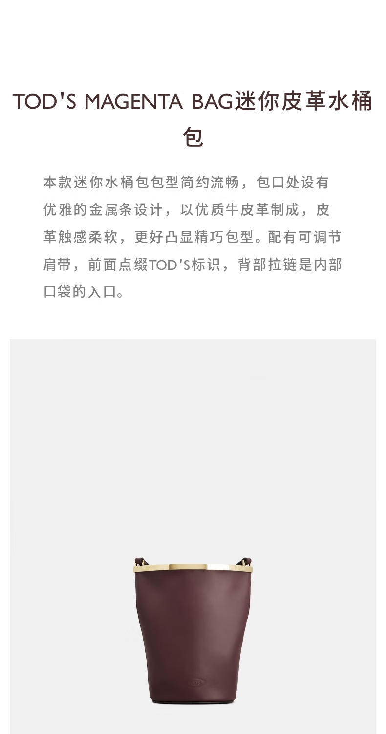 TOD'S【季末特惠】TOD'S官方女士MAGENTA BAG迷你水桶包 酒红色