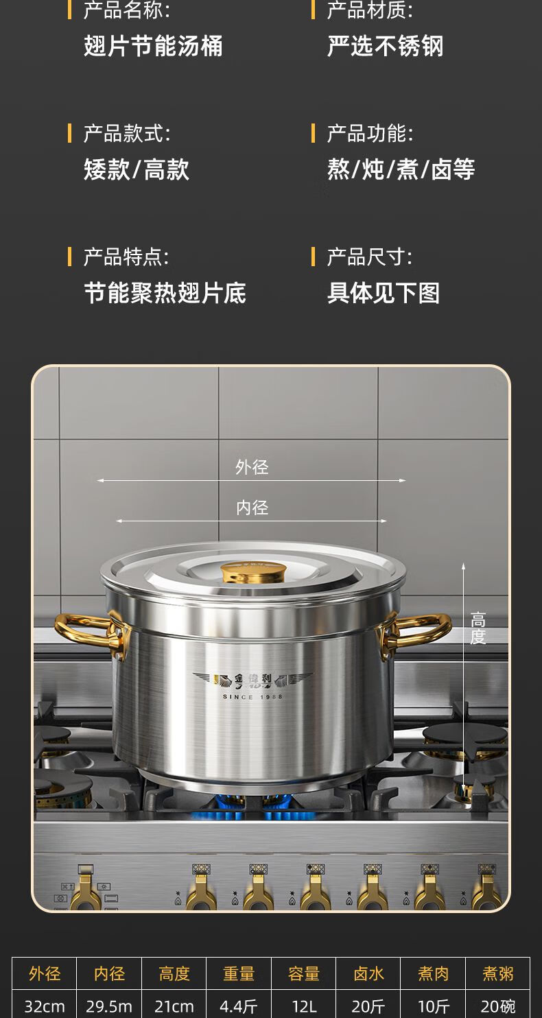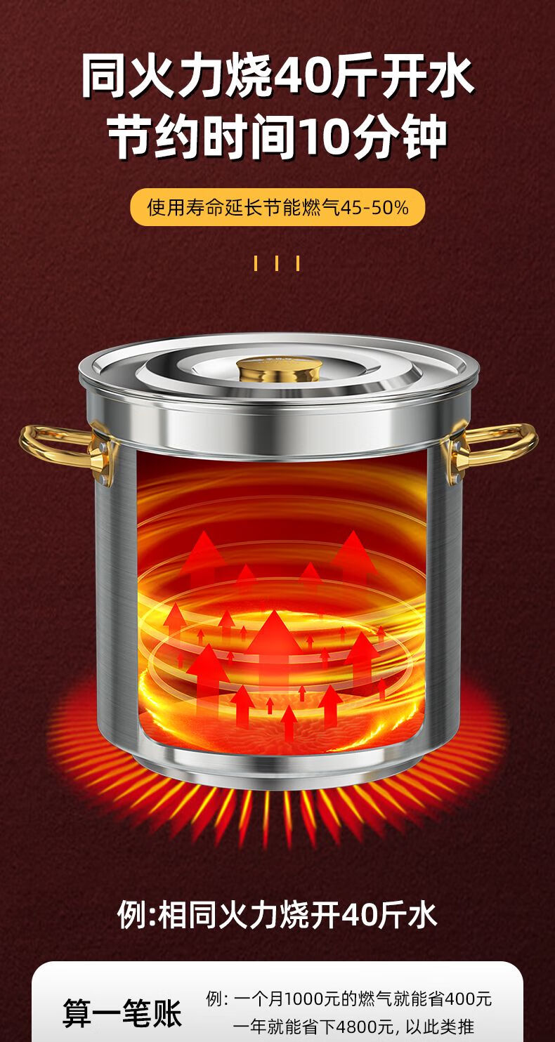 Fin energy-saving soup bucket commercial gas composite bottom energy-saving large soup pot brine pot heat gathering 304 stainless steel bucket ultra-thick energy-saving pot 5028-free anti-stick steaming sheet 0cm