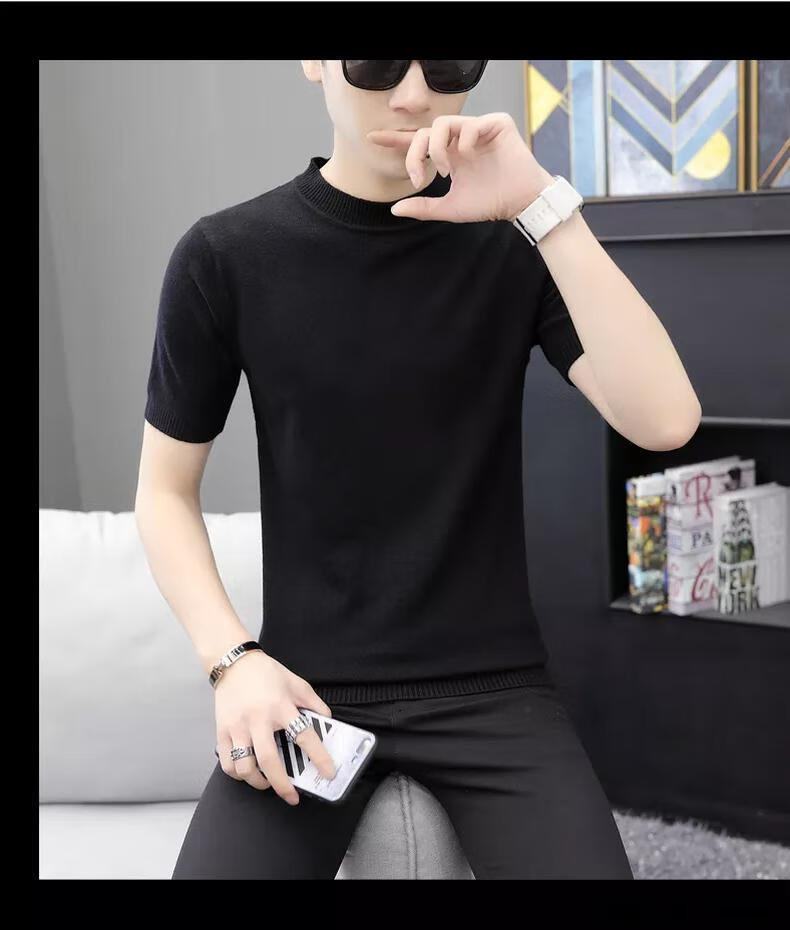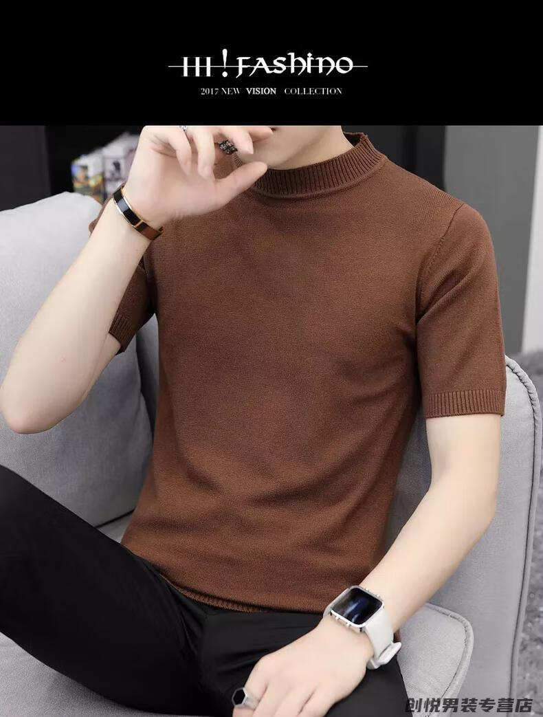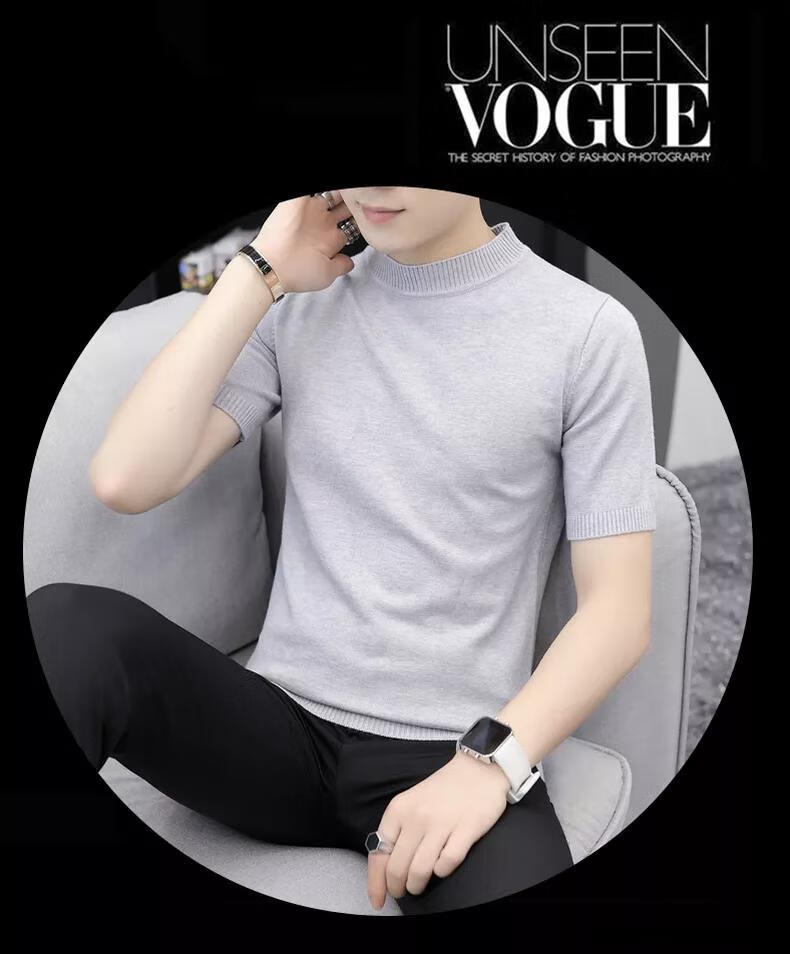 智兜兜品牌男装春秋款短袖t恤毛衣男圆领半袖针织色修身毛衫针织衫 9902米色 M 165
