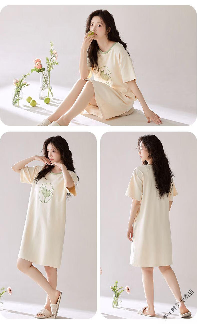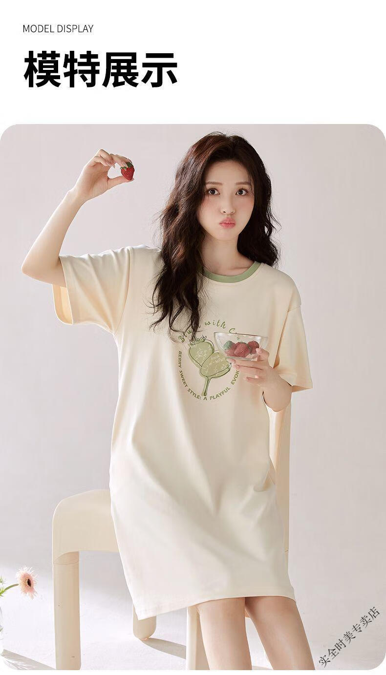 猫人(MiiOW)纯棉睡衣女夏季带胸垫睡裙新款大码宽松夏天可外穿家居服 X12529【固定胸垫 A类】 M 体重80-100斤