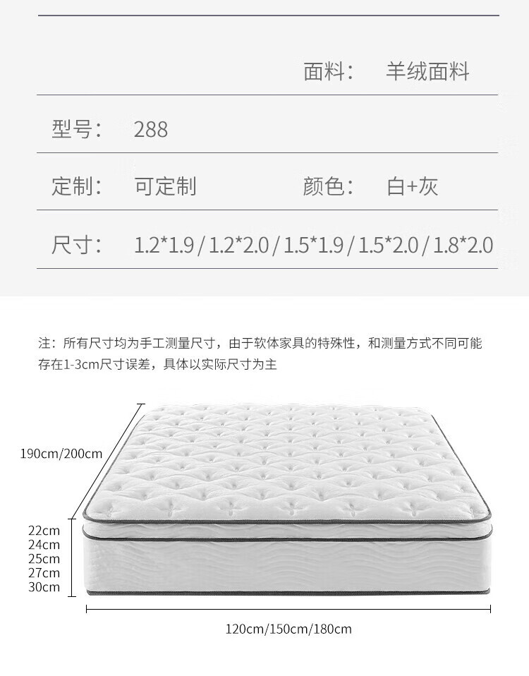 床垫席梦思1.8x2米海绵乳胶床垫子1.5x2米记忆棉加厚独立弹簧 适中稍硬:【客房舒睡】约20cm厚 1350mm*1900mm