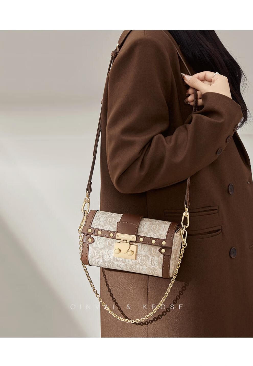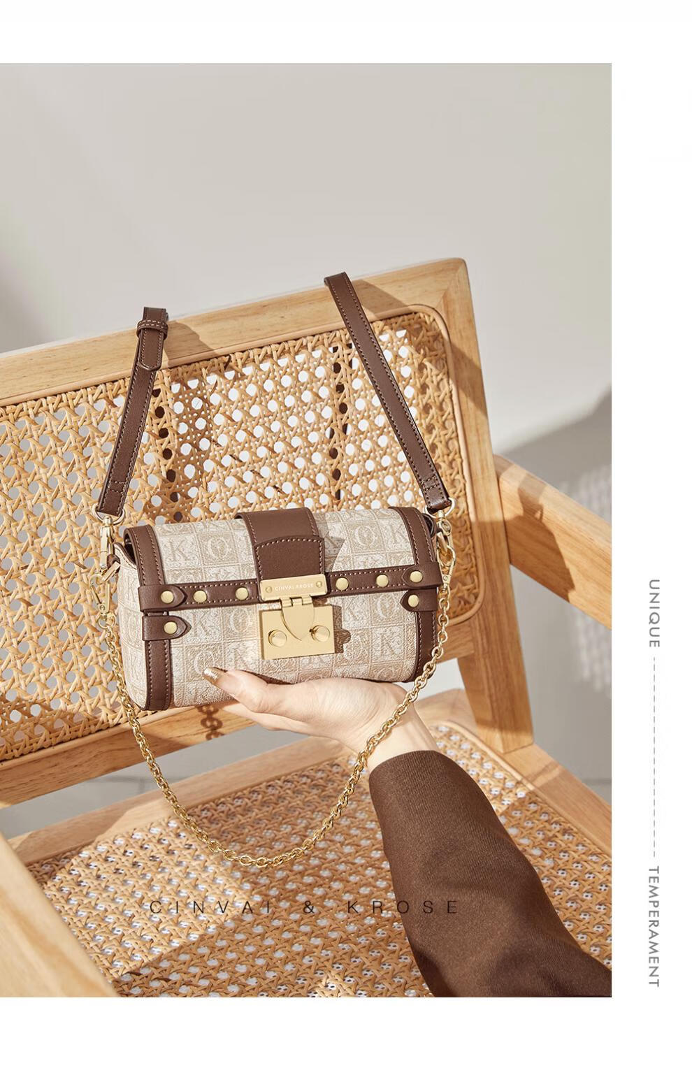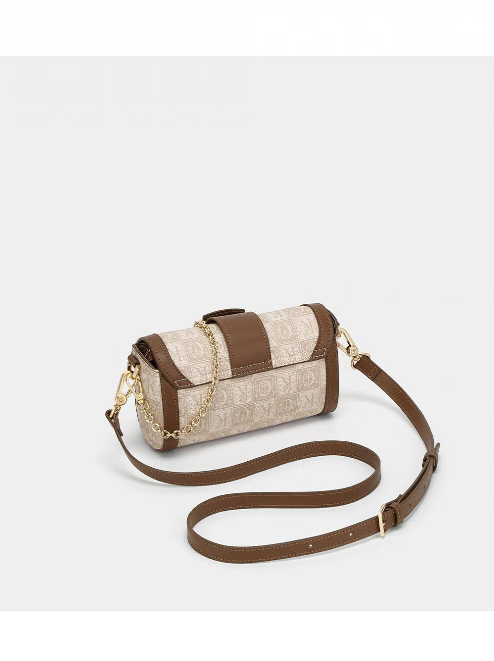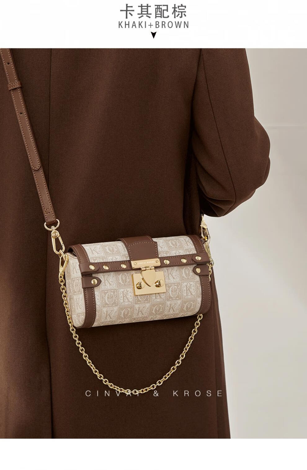 CinvaiKrose小c&k秋冬包包女2024新款斜挎包圆筒链条包通勤单肩 卡其配棕 送闺蜜女朋
