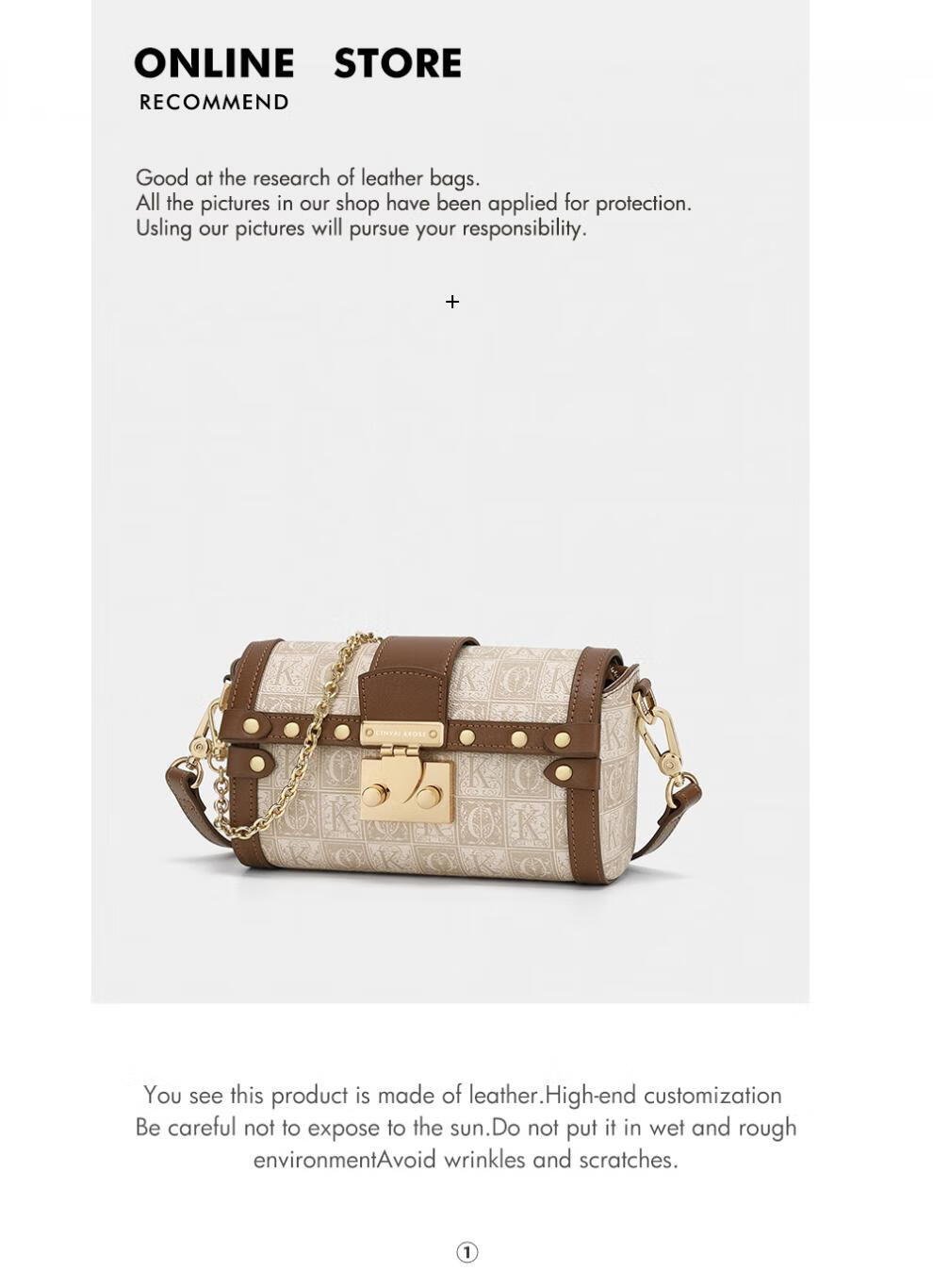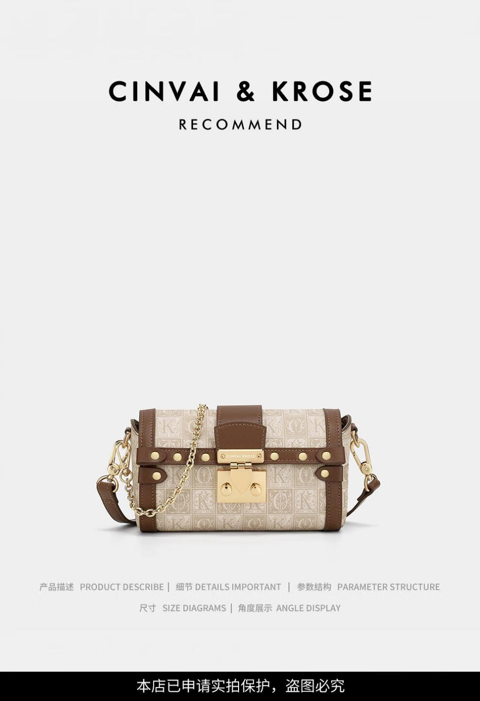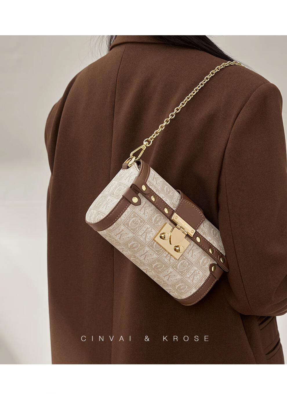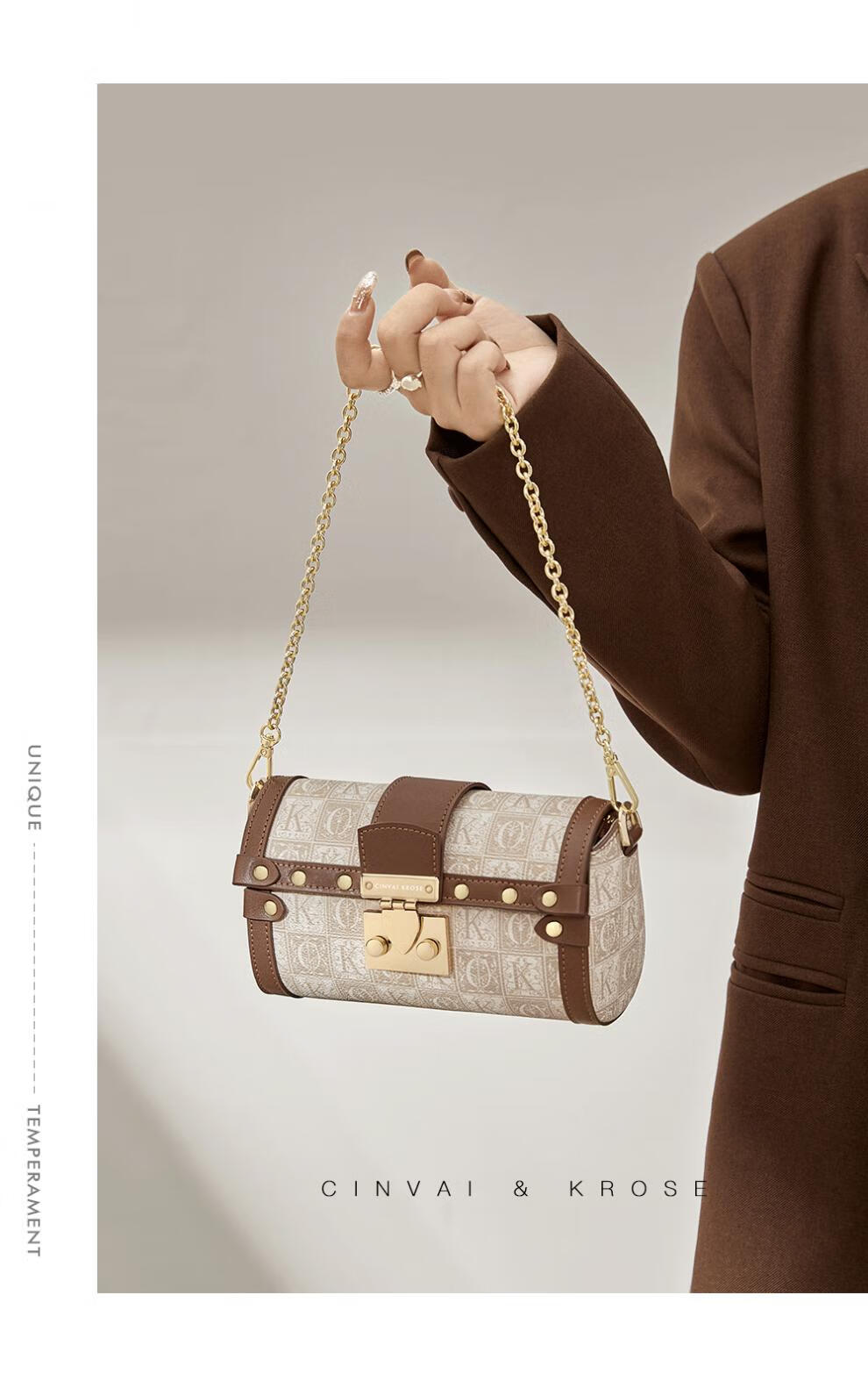 CinvaiKrose小c&k秋冬包包女2024新款斜挎包圆筒链条包通勤单肩 卡其配棕 送闺蜜女朋